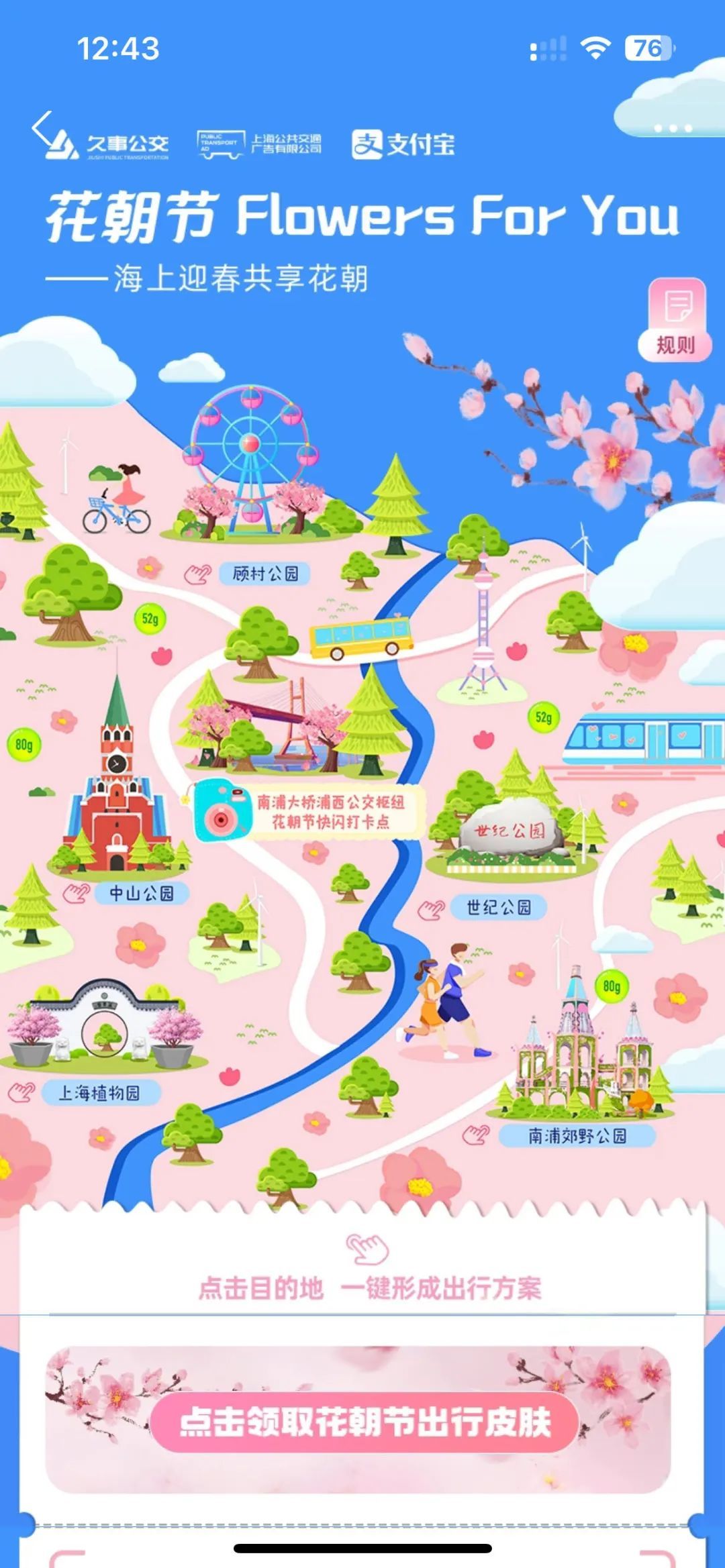 据悉,除了20路和55路外,共有包括49路、926路、963路在内的5条花朝节线路,需要注意的是,每条线路只有一辆花朝节巴士,想要乘坐需要运气和耐心哦!如果想要蹲点乘坐或拍摄穿花衣55路,可在随申办APP的公交实时到站查询车辆的具体位置(车牌号见图)。除此之外,市民还可通过支付宝搜索“花朝节”参与花朝节打卡活动、查看赏花攻略。