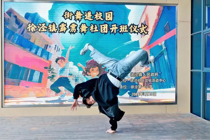 徐泾镇2023年获评上海市全民运动健身模范街镇建设试点单位,也是青浦区唯一获此殊荣的街镇。据了解,此次成立的霹雳舞社团,由徐泾镇社区文化活动中心携手徐泾第一小学共同打造,旨在将霹雳舞打造成徐泾镇独具特色的文化体育品牌,培训过程中表现优异的学生,有望通过系统全面培训后代表徐泾参加区级、市级比赛。