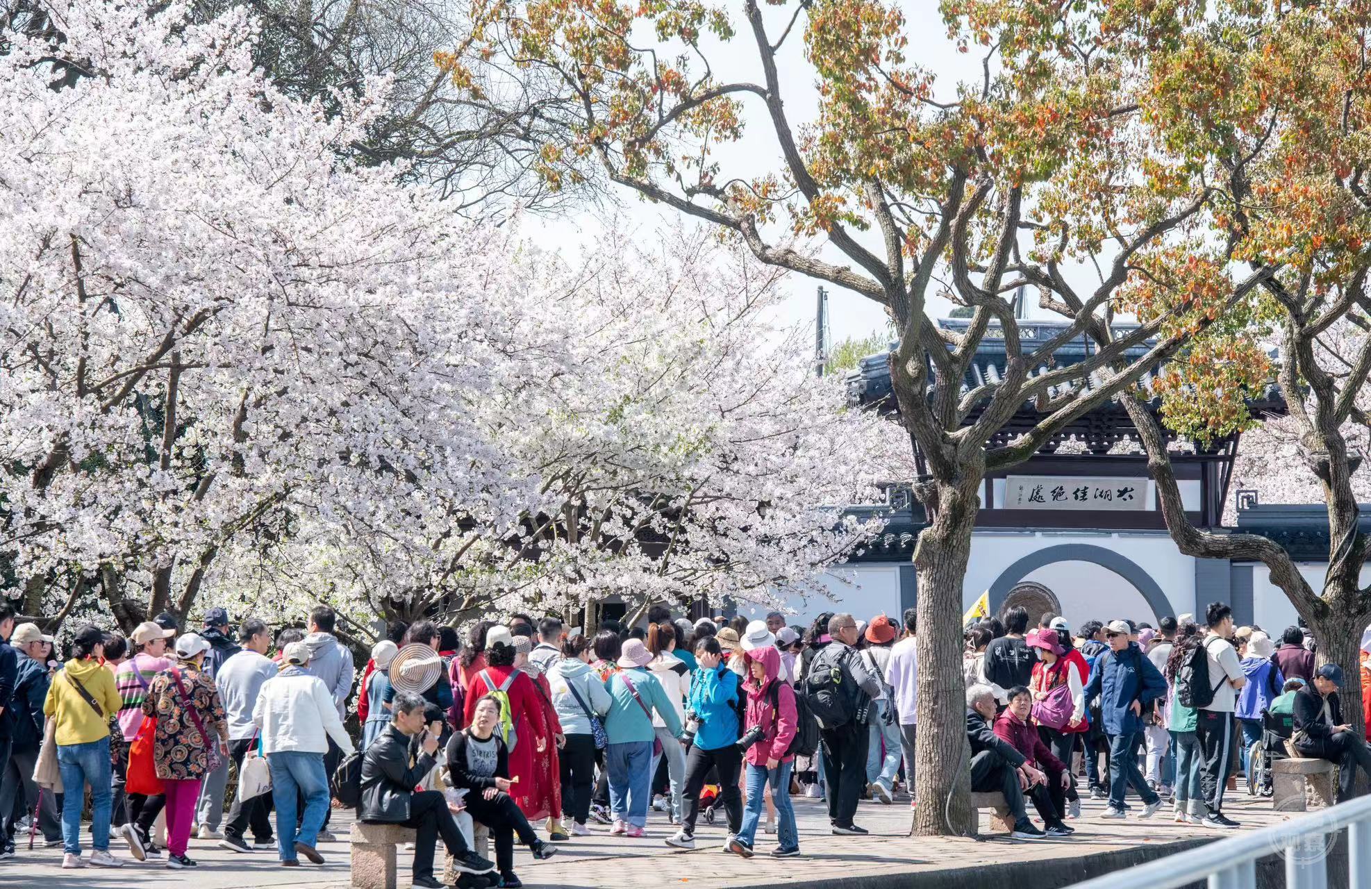 “近一周选择水上专线的游客超15万人次,较往年更多。预计本周末会迎来‘水上赏樱’高峰,日均水上游客数将超3万人次。”市交通综合执法局执法人员介绍,不堵车、5分钟直达鼋头渚长春桥码头的“乘风破浪”体验,让游客赏樱之前多了一道游太湖的“开胃菜”,也让水上保障显得尤为重要。