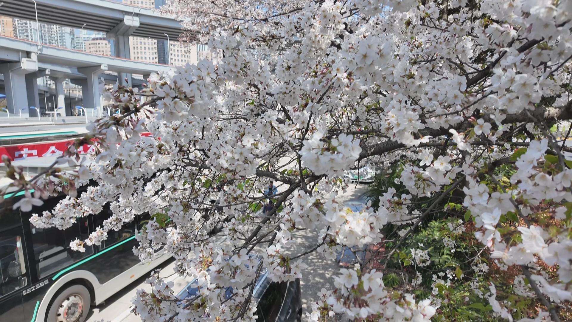 南浦大桥公交枢纽站地处市中心,有着43路、109路等数十条公交线路,每年樱花盛开季,车站也因为成片的绝美樱花被市民喜爱,成为大家心目中的最美公交车站。今年因为天气的缘故,这儿的樱花开得比往年要晚上两周,不过经过一个温暖的夜晚,今天白天,车站里头的樱花全部盛放!在金黄色的阳光照耀下熠熠生辉,不光是吸引了许多蜜蜂、蝴蝶,更是让远近的市民都蜂拥而至。
