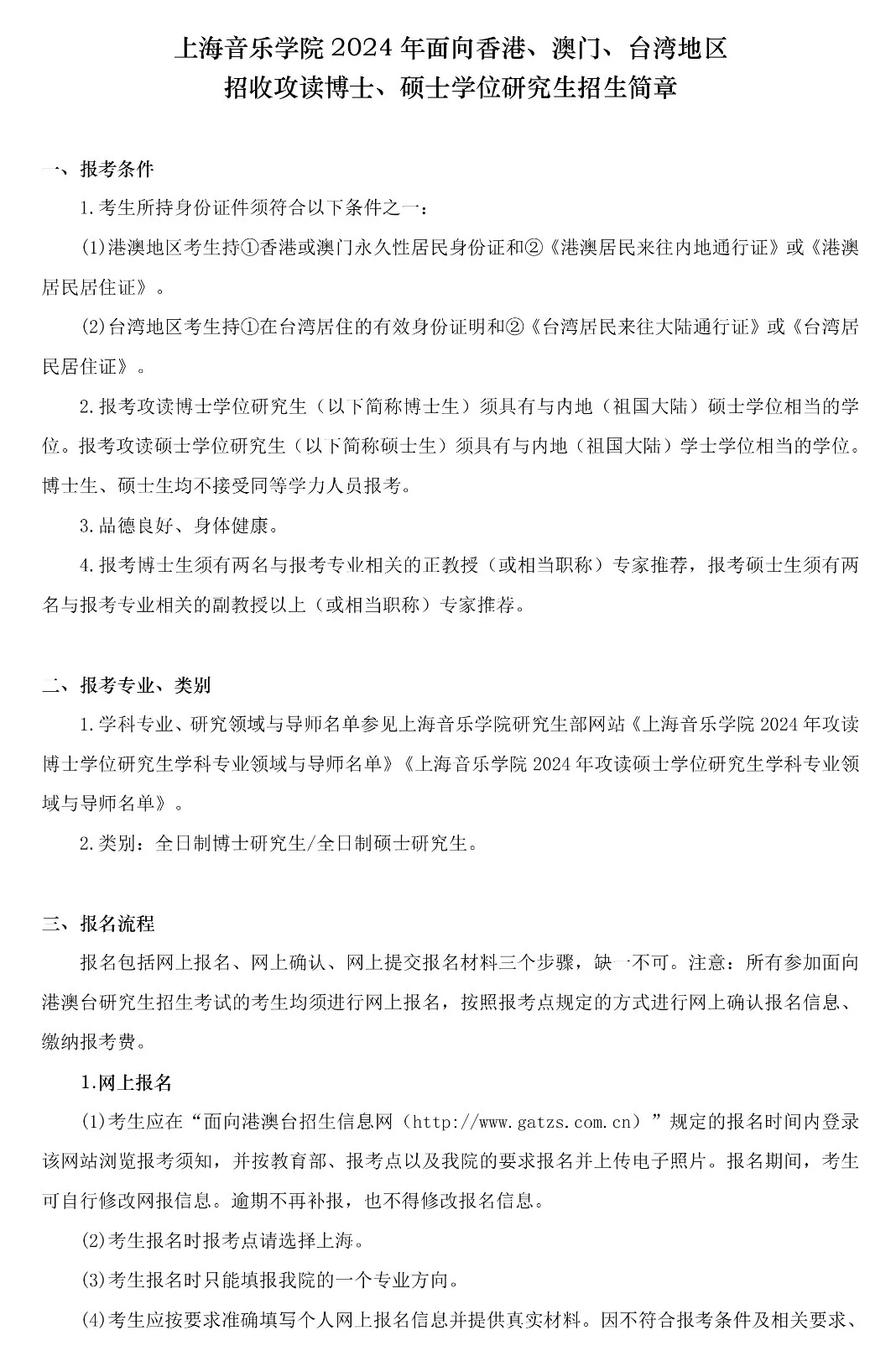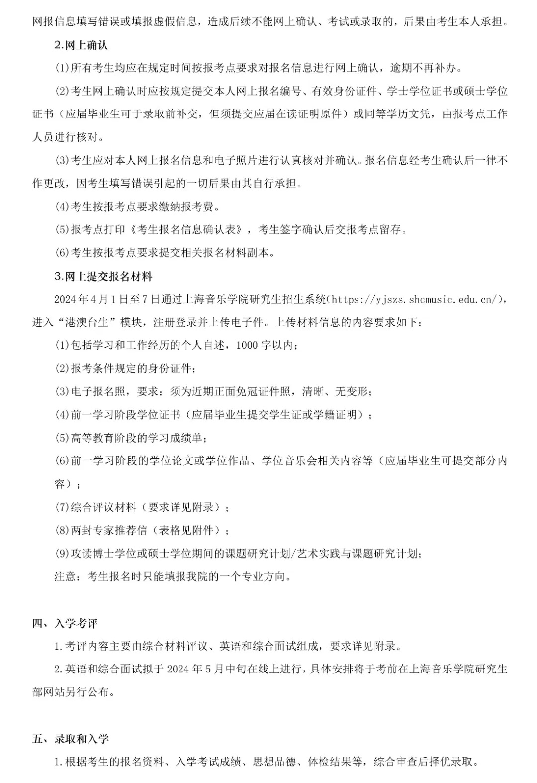 备注:上海音乐学院研究生招生系统(https://yjszs.shcmusic.edu.cn/)将于2024年4月1日9:00开通。在注册、申请过程中如有问题,请致信yjszs@shcmusic.edu.cn咨询。