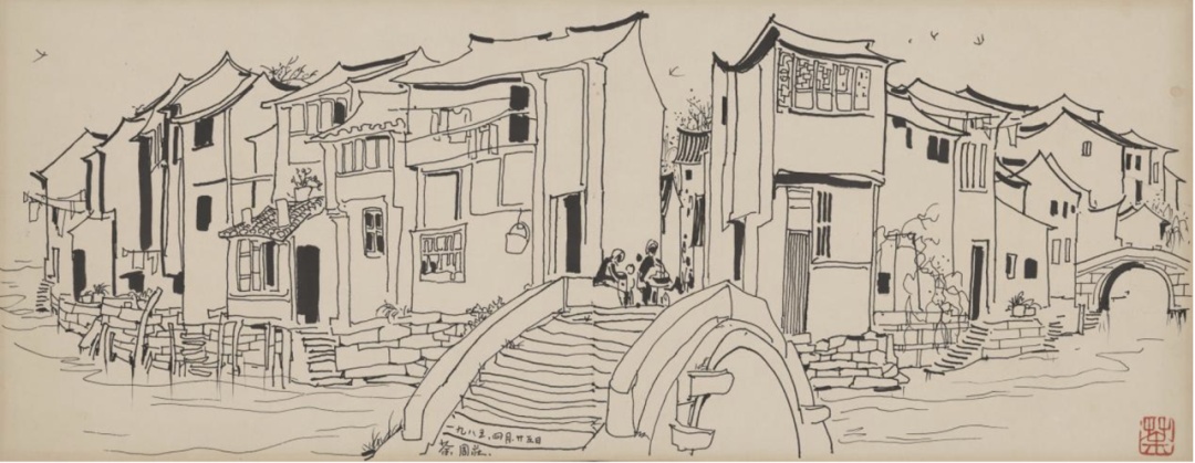 “桥”与周围的自然环境、民居建筑相融合,形成和谐统一的景观。它们与河流、垂柳、驳岸、船只等共同构成了水乡特有的“小桥流水人家”意境。“桥”是一种连接,连接了你、我、他,这座“桥”或许就是吴冠中老爷爷与故乡的连接。