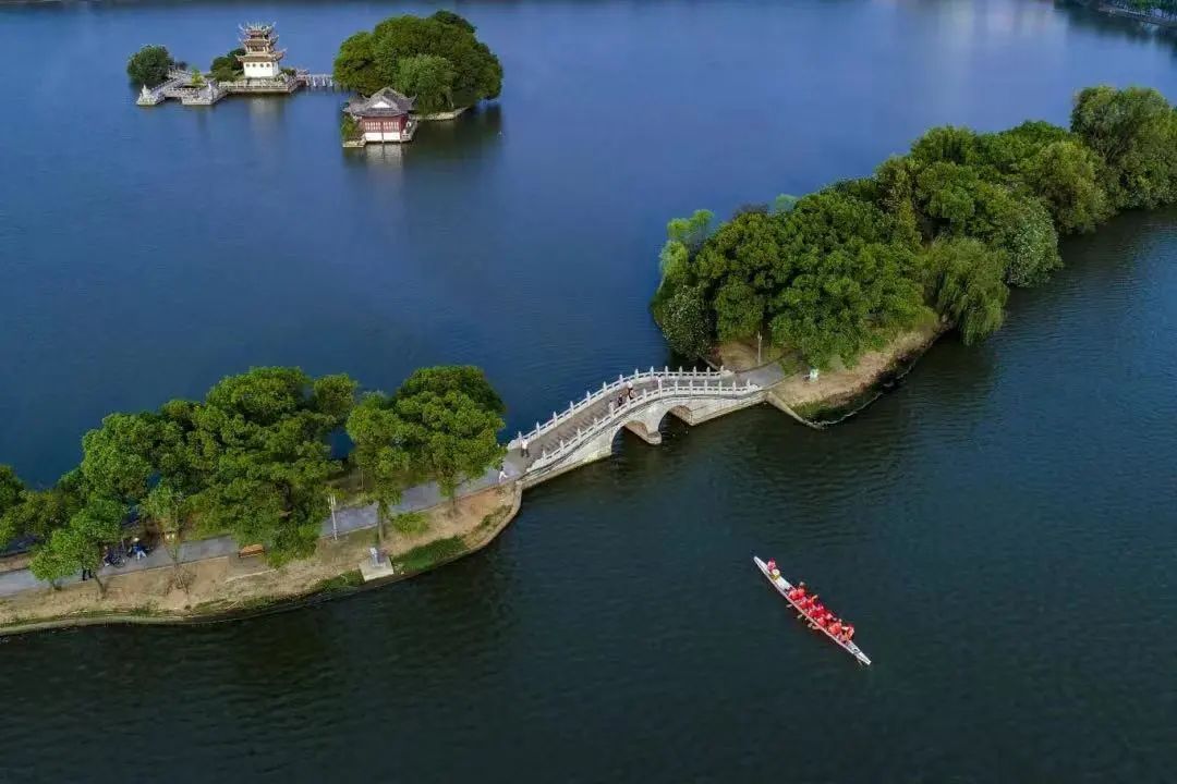 天井湖公园也是踏春的绝佳好去处。进入天井湖公园,漫步在湖边和桥上,就会立即感觉到开阔和惬意。在阳光绝佳的时候,可以选择租下一艘小船,在湖面上泛舟格外惬意,也可以游船到湖中心的小岛,登岛游玩,观赏岛上“上通天,下通海”的天井。