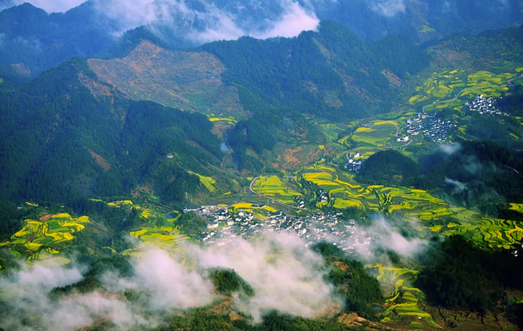 藏在石台牯牛降的油菜花,凭借富硒土壤,在静谧山谷里开得灿烂。整齐的梯田伴着巍峨青山与悠悠白云,让一切都美得恰到好处。徜徉于花海之间,再深吸一口负氧离子爆棚的空气,即可感受春日里真切的幸福。