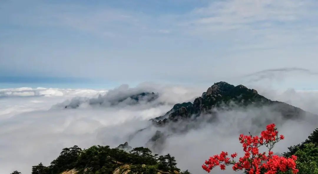 这里是有着“天街花市”之称的九华山花台景区,杜鹃花海开在云天相接处,如火焰般热烈,谱写着春天最美的颜色。