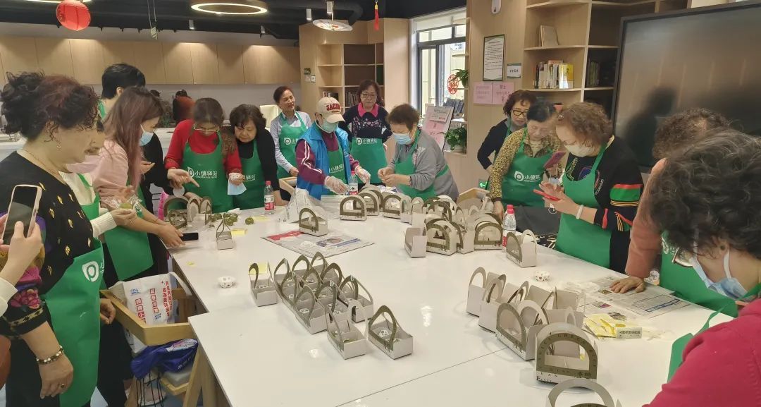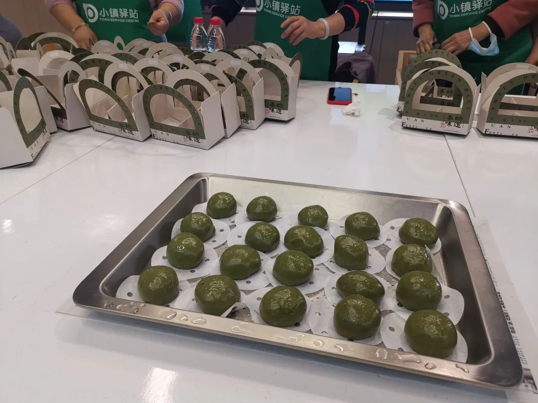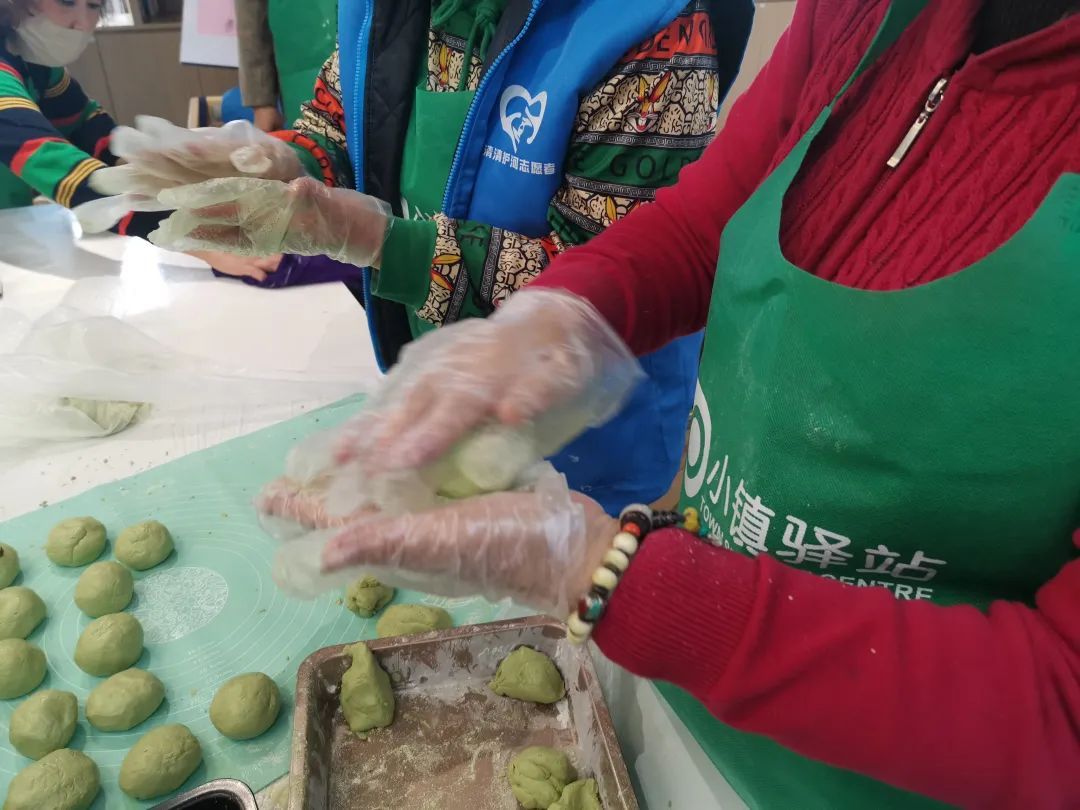 驿站的工作人员为龙潭居民区的居民们介绍了清明节的历史以及习俗文化。随后,在老师们的细致指导下,居民们分工合作,兴致勃勃地拌粉、揉面、揉捏、塑形、包团……在一双双巧手下,一个个通体青绿、模样俏丽、温润如玉、飘着清香的青团制作完成,蒸熟后被放进礼盒,将由居委会工作人员带回社区作为慰问品。
