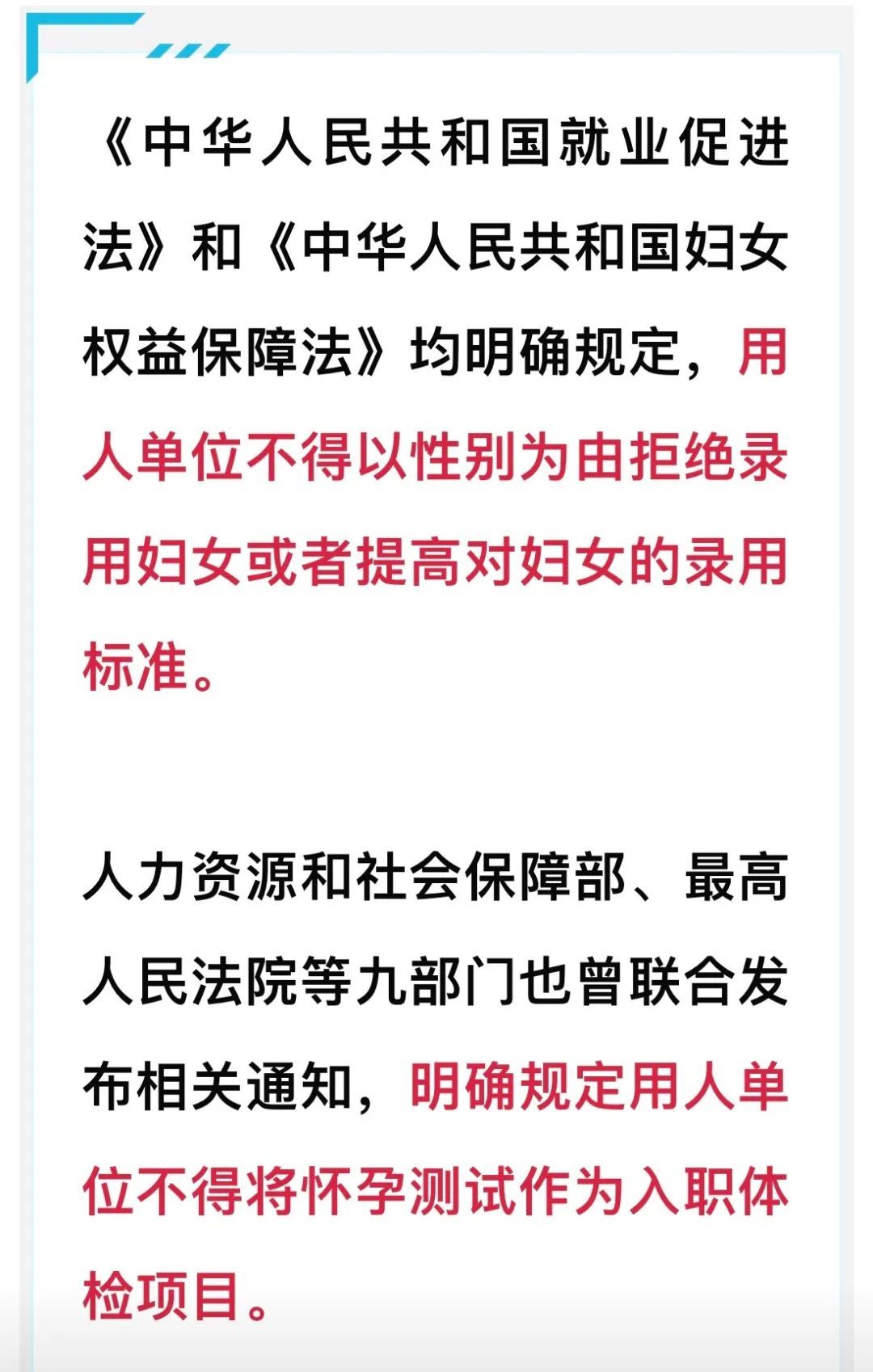 严女士同意入职并向原公司辞职。在按要求检测时,发现自己已经怀孕,于是将这一情况如实告知。几天后,公司突然通知严女士,因规划调整岗位取消,而在其他平台上,该公司仍在发布相同岗位的招聘信息。
