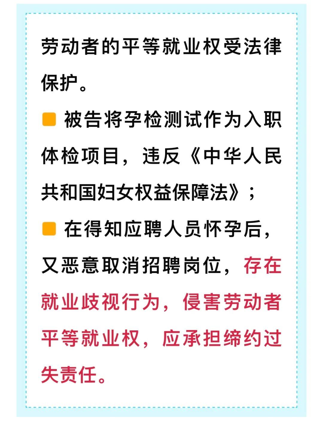 “你结婚了吗?”“打算什么时候要孩子?”……这些看似与应聘岗位无关的问题,在女性职工应聘时却经常会被问起;更有甚者,如本案中的公司,直接将孕检作为入职体检的项目,并恶意取消offer,这些行为显然侵害了劳动者享有的平等就业权。