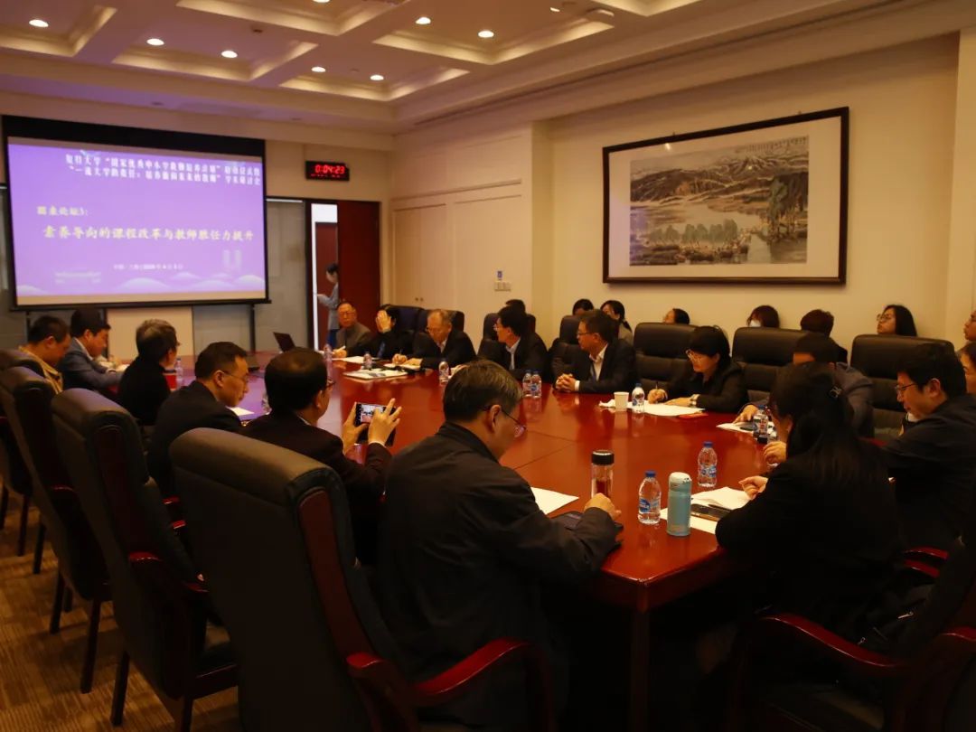 复旦大学党委书记裘新、教育部教师工作司司长俞伟跃、上海市教育委员会副主任叶霖霖出席并致辞。会议由复旦大学副校长汪源源主持。研究生院作题为《厚植复旦沃土,培养具有未来胜任力的优秀中小学教师》的主旨报告。