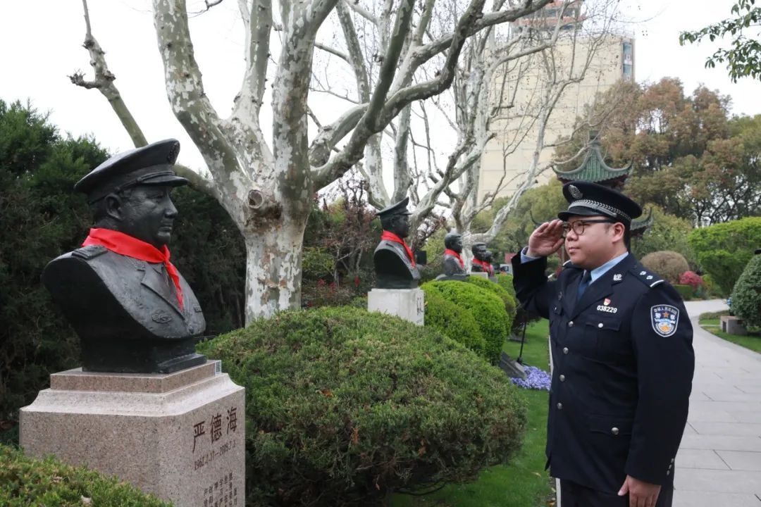 2005年6月22日凌晨,严德海在处置一起放火案时,奋不顾身冲进火海,肇事者被制服了,周边居民的生命和财产保住了,严德海却身负重伤,经医治无效壮烈牺牲。严德海大无畏的牺牲精神,值得所有青年民警学习。杨浦交警支队机动大队民警张溢洋告诉记者,英烈的事迹感人至深,英烈的精神必须传承,青年民警一定要向先进学习,向先进靠拢,继续为杨浦公安事业增光添彩。