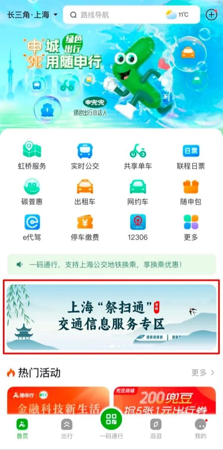 为做好市民清明祭扫交通保障工作,本市“出行即服务”(MaaS) 平台“随申行”推出 “上海‘祭扫通’交通信息服务专区”。