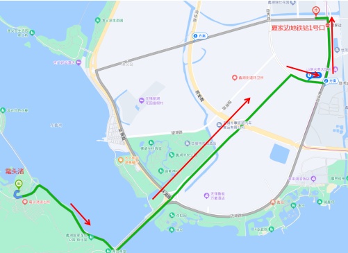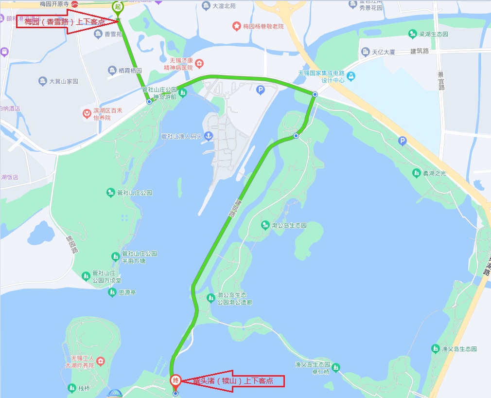 1.市民可以乘坐地铁二号线由梅园地铁站3号口出,向正东方向沿环太湖公路步行约230米然后右转至香雪路上的临时上客点乘坐。