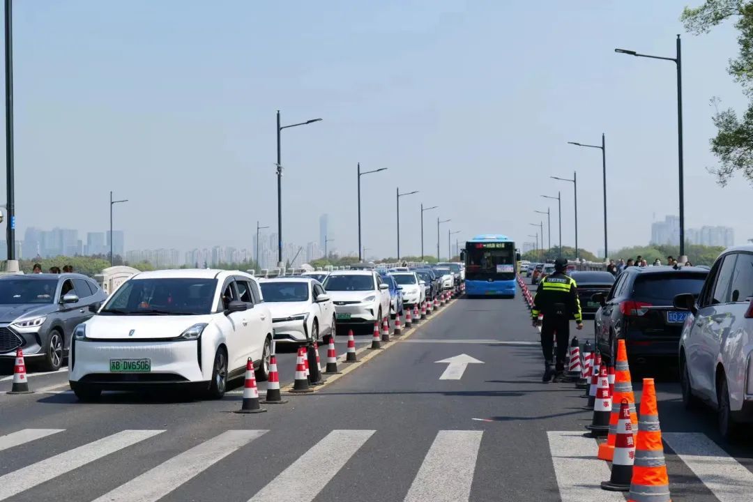 然而,接驳车与私家车在同一路上,还是会共同出现“车多缓行”的现象。交警也呼吁广大游客朋友,到达景区附近,一定要服从路口交警与工作人员的指挥,前往车辆至外围的临时驳车点,乘坐大巴进入反而更快进入景区。
