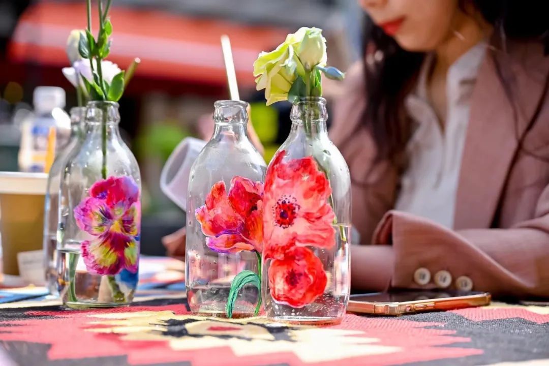 市集的特别环节联合艺术家张李亚和花艺师墨寒,将艺术与生活创新融合,带来油画与花艺结合的独特艺术装置展览。让艺术走进生活,走进社区。现场还引入了不同品牌打造多元有趣的市集业态,琳琅满目的文创商品,更有充满艺术气息的现代文化体验,为市民游客们带来别样的感官享受。