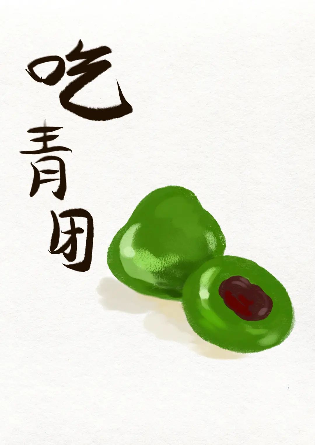 这天的重磅美食当属青团。青团是江南一带的小吃,也是清明节的特别食品。它由艾草打出汁来搅拌进糯米粉里,配上香甜的豆沙馅。一个碧绿色的青团和初春很应景。