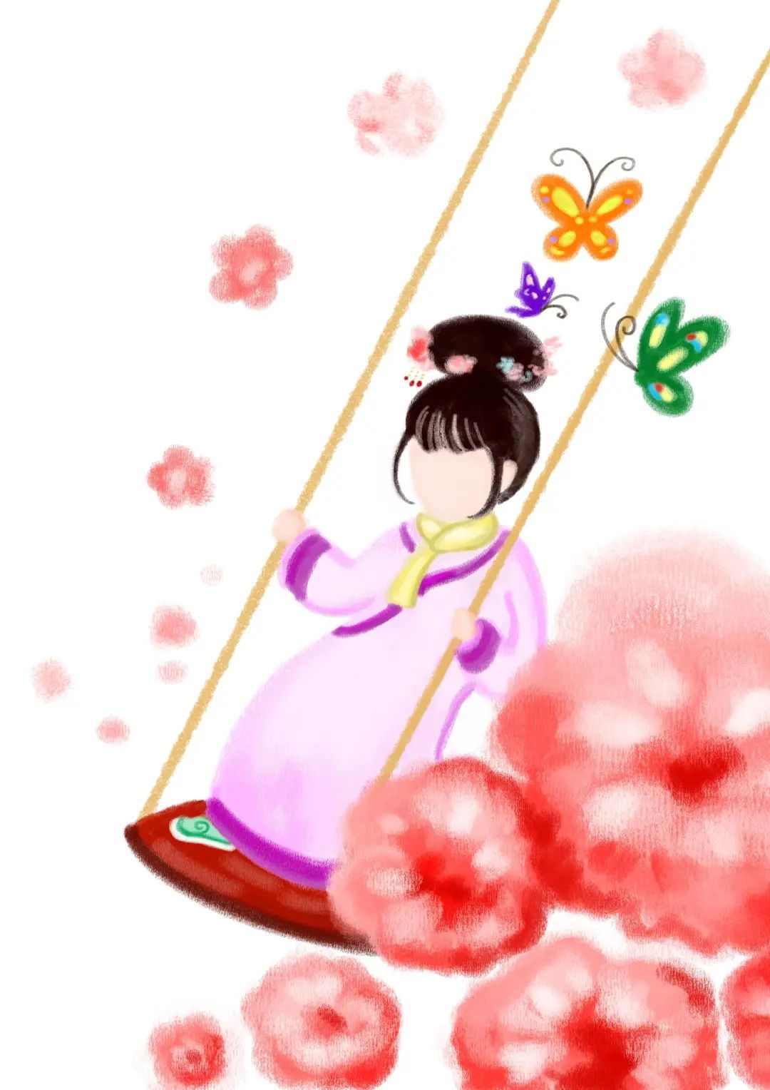 古人还会在这时候荡秋千,这项活动在唐代是很流行的游戏。玩乐的同时还能锻炼身体,深受大众的喜爱。