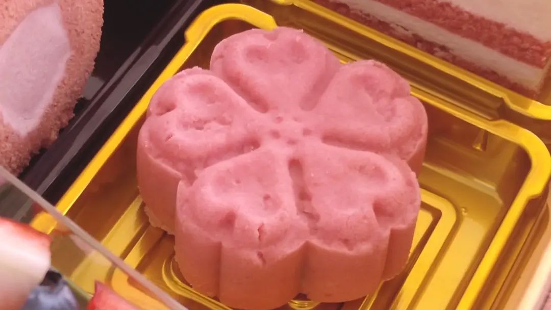 工作人员告诉记者,“这个樱花下午茶是我们樱花季特定的。选用应景的元素,特别是在樱花慕斯上面有盐渍樱花。这个品种是关山樱,是可以食用的。樱花糕是用火龙果加上去皮的绿豆,打成泥之后调和而成,所以口感很细软。”