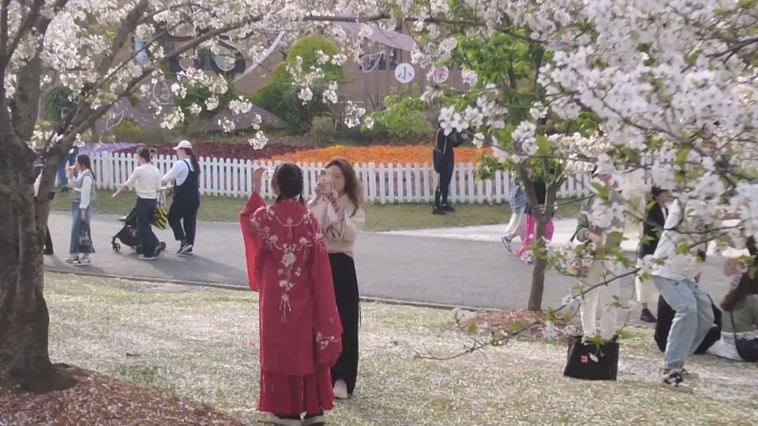 市民李女士告诉记者。很美的四月,微风徐徐,风把樱花吹下来的感觉特别浪漫,特别治愈,很舒服。到这里来就是感受春天那种如沐春风的感觉。