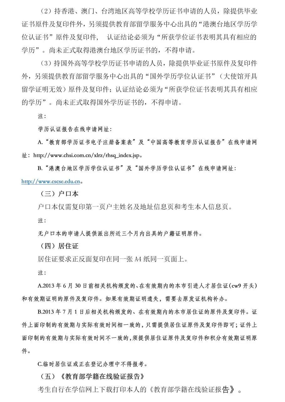 注:持有本市有效期内居住证是指2013年6月30日前办理的,在有效期内的本市人才引进类居住证(证件编号为CW9开头)或2013年7月1日后办理的、在有效期内的本市居住证,临时居住证或正在登记办理中的不得报考。