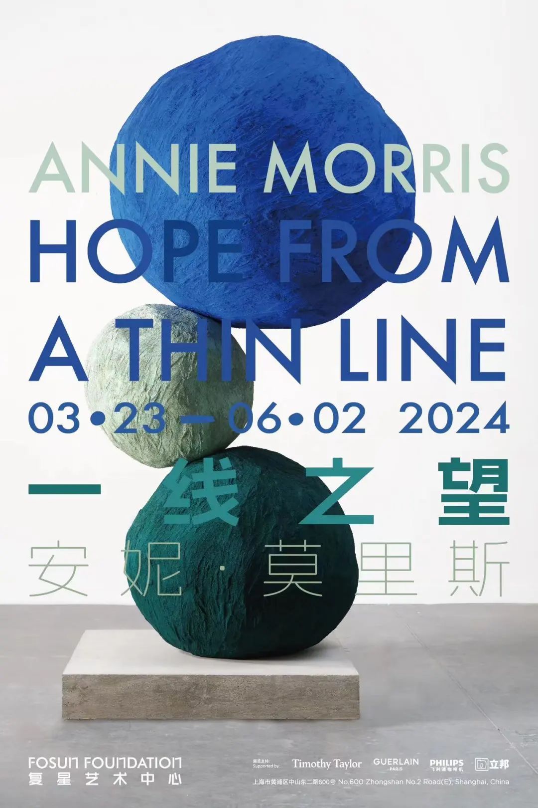 上海复星艺术中心正在呈现艺术家安妮·莫里斯在中国的首次大型机构个展“一线之望”,展出莫里斯自2012年以来的雕塑、挂毯和绘画创作,带领观众步入其生动而抒情的艺术世界。展览将包含一件艺术家为本次展览特别创作的壁画作品,这件横跨整个展厅的场域特定壁画上会挂有绘画与织物作品,在转瞬即逝与隐喻来世的概念之间营造出一场动态对话。莫里斯的艺术实践涉及各类媒介,她将对个人经验的反思与对线条、表面和体积的探索交织互融,呈现出强烈却轻盈的色彩与女性化的形态。本次展览是上海复星艺术中心继艺术家草间弥生与辛迪·舍曼个展后,推出的第三个女性艺术家个展,亦是莫里斯在亚洲的首次大规模机构个展,展览将延续复星艺术中心对女性创作的关注,全面呈现艺术家由其独特生命体验延展而来的多元实践。