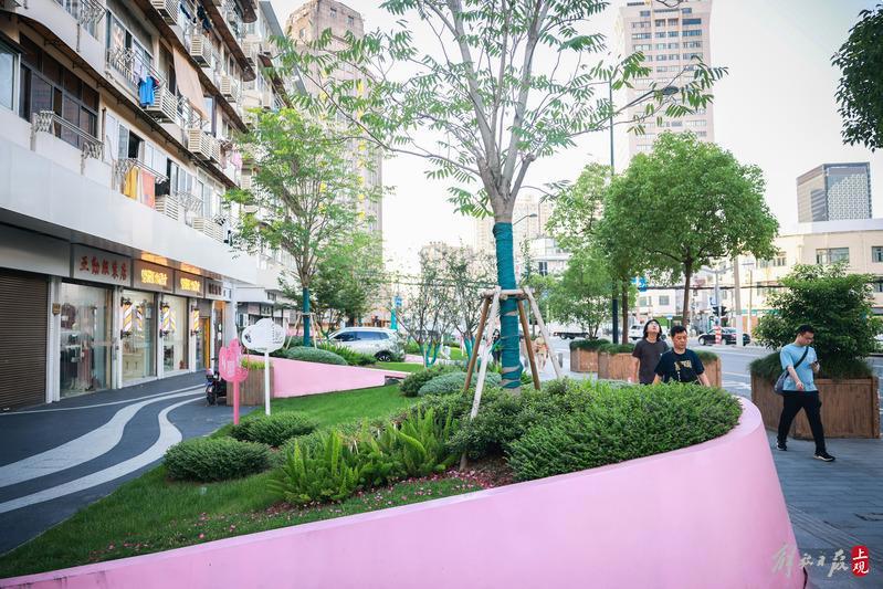 前几年,街道联合专业单位,听取居民的意见,对这里进行了改造。老年居民需要健身、休憩的空间,街道在这里打造了健身步道、休闲亭;小朋友、年轻居民希望能有赏心悦目的环境,街道就在这里打造了绿植、花卉,形成了“春花秋叶”的美景。