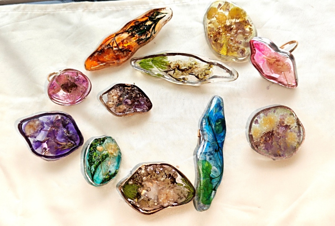 老师细心地讲解了人造植物琥珀的制作方法和技巧。制作植物琥珀是一门充满想象力的手工类型,利用模具和各种染色工具,把干花用滴胶进行封存,透过干后的滴胶,能清楚地看到干花的鲜艳颜色与形状,就像琥珀一样晶莹剔透。