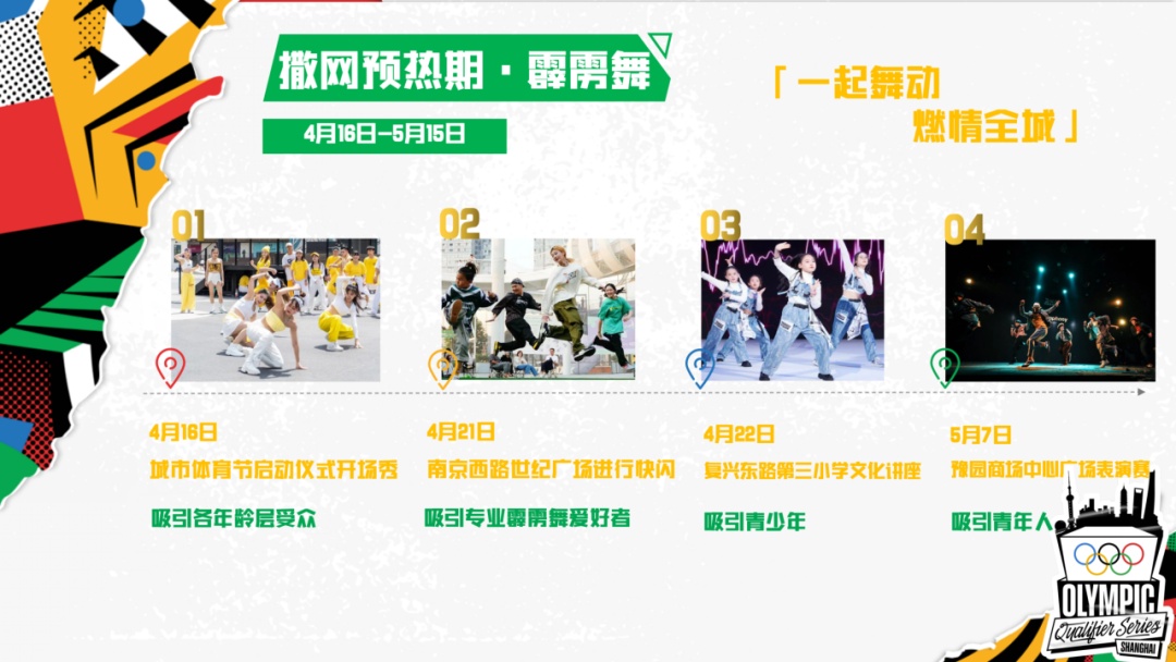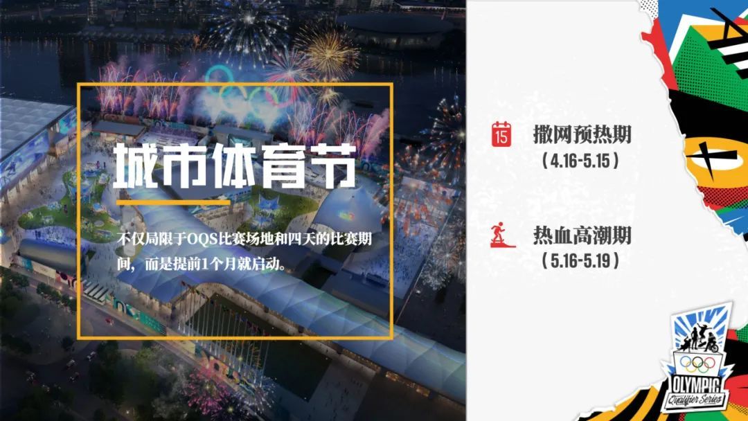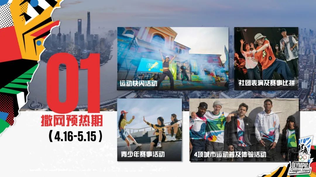 撒网预热期为4月16日至5月15日。4月16日城市体育节的序幕将正式拉开,届时在上海、长三角地区,乃至全国将开展为期一个月的4项城市运动赛事活动。