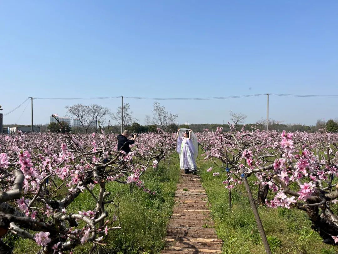 西渡街道成立于2015年,是奉贤区第一个行政区划街道,区域面积30.37平方公里,农村地区面积23.31平方公里,其中黄浦江岸线8.3公里。近年来,西渡街道紧紧围绕乡村振兴战略目标,打造集科创农业、田园总部生产、水乡生活、生态体验为一体的“南上海·浦江第一湾”。在这里,人与自然和谐共生,传统与现代交相辉映,呈现了一幅美丽乡村画卷,谱写了一篇充满生机和活力的乡村振兴新篇章。今天就来到黄浦江畔的北新村,开启乡村行春之序曲。 赏粉嫩桃花、品桃花糕点、穿汉服巡游……春暖花开的日子,人面桃花相映红!在黄浦江畔的小小桃园中,无论是孩童还是大人,都找到了各自的快乐,沉浸式体验了一回“村游”。 桃花林中,无边粉色点缀枝头,花香随风飘散沁人心脾。穿着汉服的孩子们正在给爷爷奶奶们演奏空灵鼓,悠扬的乐声在桃花林中缭绕,与朵朵桃花交流着春天的美好。老人们和孩子是偶然相遇,孩子们是来春游的社团小伙伴,老人们则是相约一起来放松心情的志愿者团队,老老少少在桃林里赏花听曲、投壶书写,感受着春日的快乐。 “从来不知道自己所住的街道还有那么好看的桃花!今天我心情特别好,还可以换装穿汉服,一开始不好意思,后来就觉得很开心,我回去要告诉我的老姐妹们。”居民黄月花在桃花林拉着朋友快乐拍照,越拍越放松。 “园主”陈莉接手桃林不到一年,去年此时,无意路过江畔的她被这一整片粉色所吸引。得知桃农因不善经营,有了关园的打算,她当机立断盘下了桃园,并把自己所爱的文化产业引入桃园,亲手打造了一年四季都可以游玩的欢喜桃园。“一眼就看上这儿!我本来是来这里寻找室外露营地,结果被这片桃园的粉色花海吸引了。”陈莉对于自己冲动投入农业的决定觉很是满意,她说:“我本身就是做文创的,我就用文创来做这里的一二三产融合,我计划把桃园做成‘春赏桃花,夏摘桃,秋采桃胶,冬围炉’,这样一年四季都可以安排系列活动,还可以围绕国韵古风注入不同的元素。” 事实上,陈莉的桃园改造和所在的北新村发展不谋而合。北新村是虹梅南路隧道过江后“浦南第一站”,全村区域面积3.45平方公里,拥有2.7公里的黄浦江岸线,586亩的涵养林,276亩的黄浦江生态廊道,沿岸风景怡人,真正算得上空气清新,藏绿而生。 目前,以“欢喜桃园”“节拍营地”“大乐乡野”等农村创业者品牌的引入为契机,北新村正在筑巢引凤持续吸引更多社会人才投身乡村发展,助力乡村振兴。北新村支委、村委委员顾文彬介绍:“我们村生态资源比较好,靠近黄浦江边,拥有大片的涵养林,一直致力于打造乡村文旅,比如全新打造的江畔涵养林步道,现在周末来这里散步休闲的市民越来越多。也正是如此,才能吸引了像欢喜桃园这样的创业者来到这里,未来我们也会挖掘更多的资源,为大家提供更丰富的文旅体验。” 未来,北新村在推动农业高质量发展的基础上,将持续推进全域土地综合整治,不断优化乡村空间,完善乡村规划,推进农旅融合,努力打造乡村特色文旅品牌,推动乡村文旅出圈出彩。