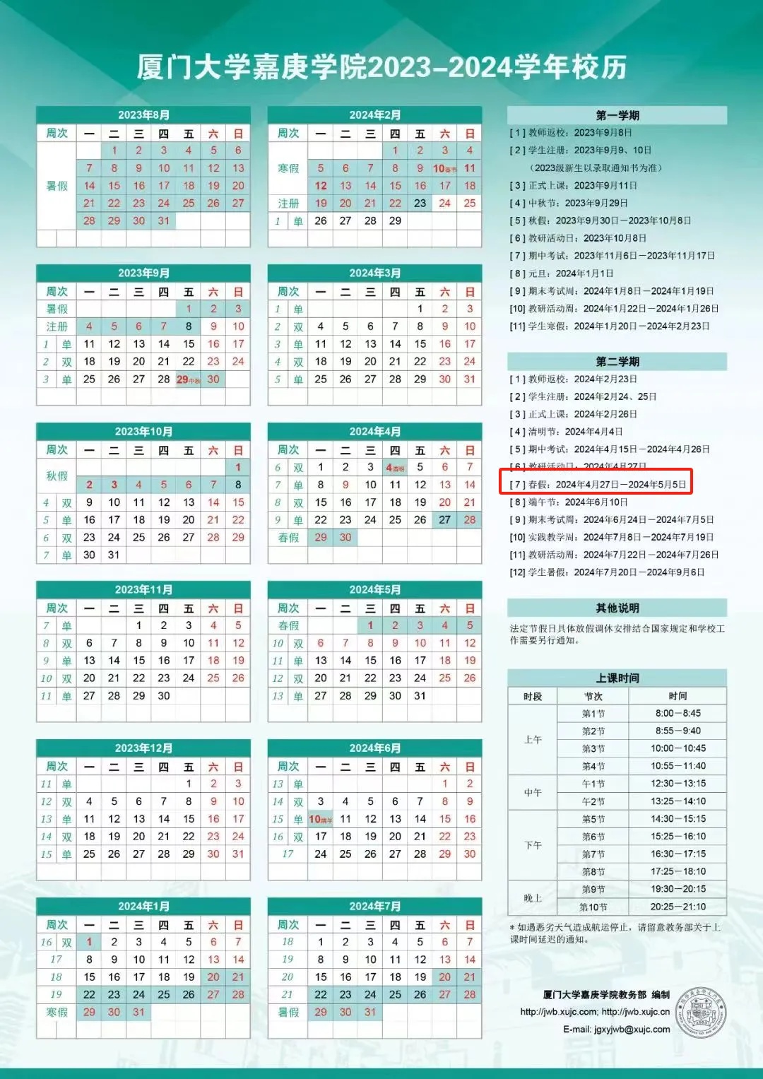也公布了春假时间