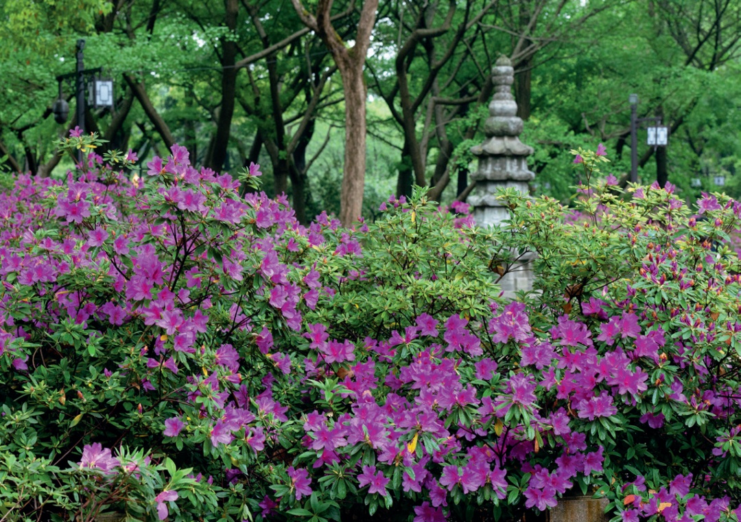 “杜鹃虽源自山野,而秀于厅堂”。上海各大城市公园内都有栽植杜鹃,其中上海滨江森林公园的杜鹃被评选为2020年度十大特色植物区。