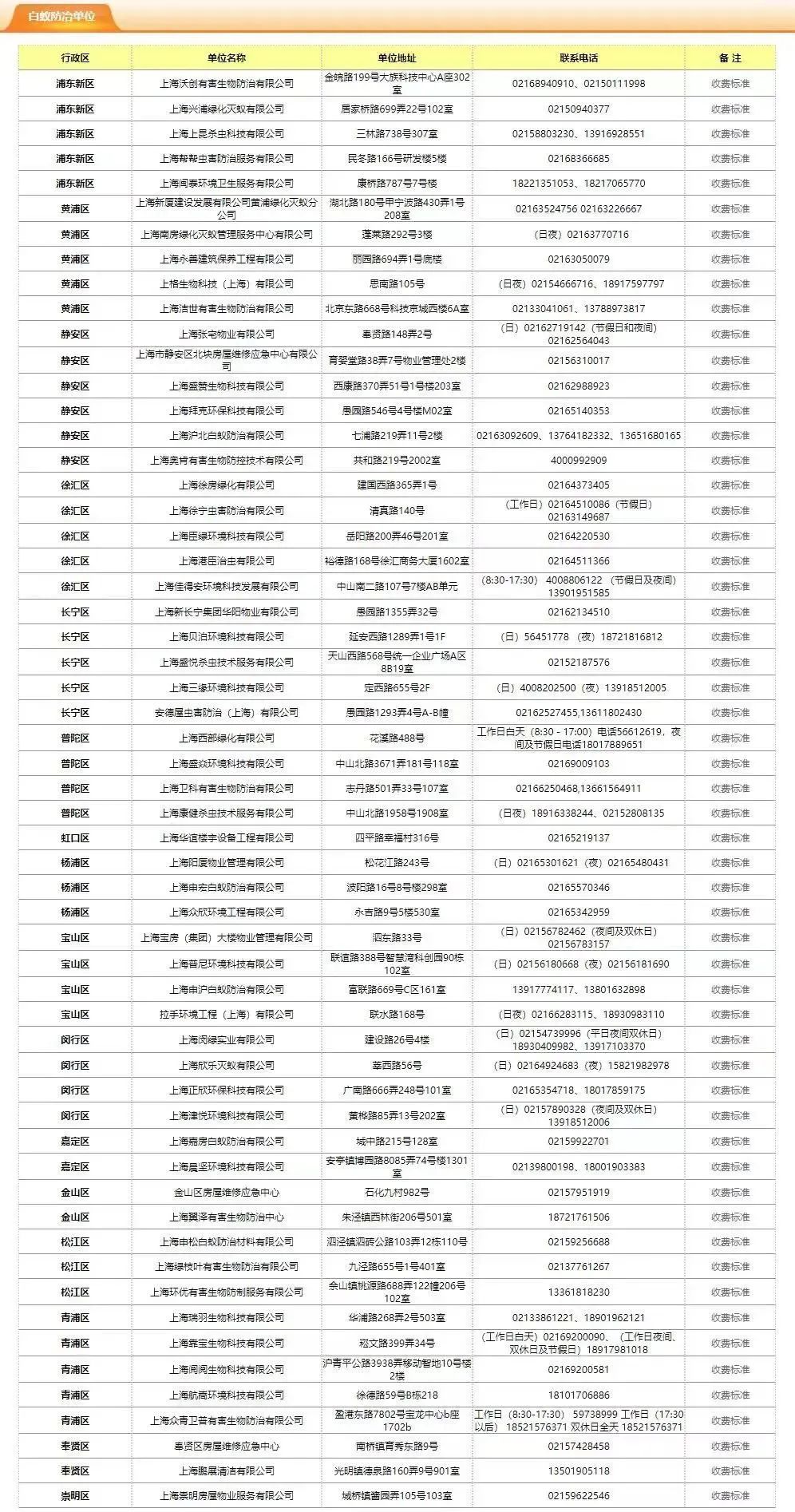 白蚁出飞的风向标 气候变化是决定白蚁大量出飞的“风向标”。当外部气温较低时,白蚁就潜伏在地板、墙壁以及潮湿的角落里,每当梅雨季节来临,特别是雨后,湿度高气压低,是白蚁最喜欢的出飞环境。 白蚁和“四害”的区别 白蚁和“四害”(通常指老鼠、蟑螂、苍蝇、蚊子)之间存在几个关键的区别,主要体现在它们的生物学特性、生活习性以及对人类生活的影响上。 从生物学特性来看 白蚁是一种专门以木材为食的昆虫,它们具有高度的组织性和社会性,通过分泌信息素来协调群体的行动。而“四害”则包括了多种不同类型的生物,它们各自具有不同的生物学特性和生活习性。例如,老鼠是啮齿类动物,善于攀爬和啃咬;蟑螂和苍蝇是常见的昆虫,能够适应各种环境;蚊子则是一种吸血昆虫,以人类和动物的血液为食。 从对人类生活的影响来看 白蚁主要对木质结构造成损害,它们会侵蚀房屋、家具等木制品,影响房屋结构安全,造成破坏和财产损失,但不会伤害人体和宠物,更不会传播疾病。而“四害”则可能对人类健康造成直接威胁。例如,老鼠和蟑螂能够携带并传播多种病原体,如细菌、病毒和寄生虫;苍蝇和蚊子则是多种疾病的传播媒介,如疟疾、登革热和肠道疾病等。 从防治方法来看 对于白蚁的防治,通常需要采取物理和化学手段相结合的方式,如定期检查、清除朽木和设置诱杀装置等。而对于“四害”的防治,除了采取类似的物理和化学手段外,还需要注重环境卫生管理,消除它们的滋生条件,如清理垃圾、修补漏洞等。 综上所述,白蚁主要以木材或纤维素为食,迷恋含有木质纤维的“美食”,像办公场所、家居环境及花园绿化中用到的大量木构件、书本、文件、纸制品及木材等都是白蚁餐单上的“必吃榜”。白蚁在进食时会分泌出蚁酸来腐蚀食材,当你还未察觉时,它们早已把地板、门框、木质家具、树木给掏空了,严重危害房屋结构安全。 划重点 居民如发现白蚁从屋外飞入室内,应立即关好门窗,用盛水的盆放在灯下,使白蚁跌入水中淹死。如果白蚁是从家中飞出或无法判断白蚁来源,应及时联系白蚁防治企业,让专业技术人员上门处理。同时,要妥善保护好蚁害现场,不要盲目自行消杀,扩大危害范围。 做好预防措施 主要有以下6点: 1.采取通风、透光、干燥等措施来消除室内潮湿; 2.经常打扫,消除一切会诱集白蚁的垃圾废品; 3.楼梯及阴暗角落不堆放杂物,室外场地尽量不堆集枯枝、废弃物或建筑木材; 4.加强装修中木材、木制品等检查; 5.每年月3至7月为白蚁繁殖期,建议加装纱窗,防止白蚁飞入家中; 6.加强房屋内物品的检查,发现疑似白蚁活动迹象,及时向专业人员咨询和检查。 白蚁防治的求助途径 (一)微信小程序 注册登录“随申办”或“上海物业”小程序,在搜索服务事项栏中输入“白蚁防治单位”,可按行政区查询白蚁防治企业。 (二)电话 拨打962121物业服务热线进行咨询。 (三)网站 查找“上海住宅物业网”(https://962121.fgj.sh.gov.cn),点击“白蚁防治”栏目,查询白蚁防治企业的联系电话、收费标准等。 目前,本市16个行政区都有白蚁防治企业,市民可以根据实际情况,就近选择白蚁防治企业进行上门灭治。如发现白蚁防治企业有未按公示的收费标准乱收费的,可拨打962121热线进行投诉。 57家白蚁企业名录