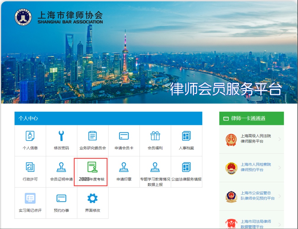 (二)进入【律师会员服务平台】,点击【2023年度考核】