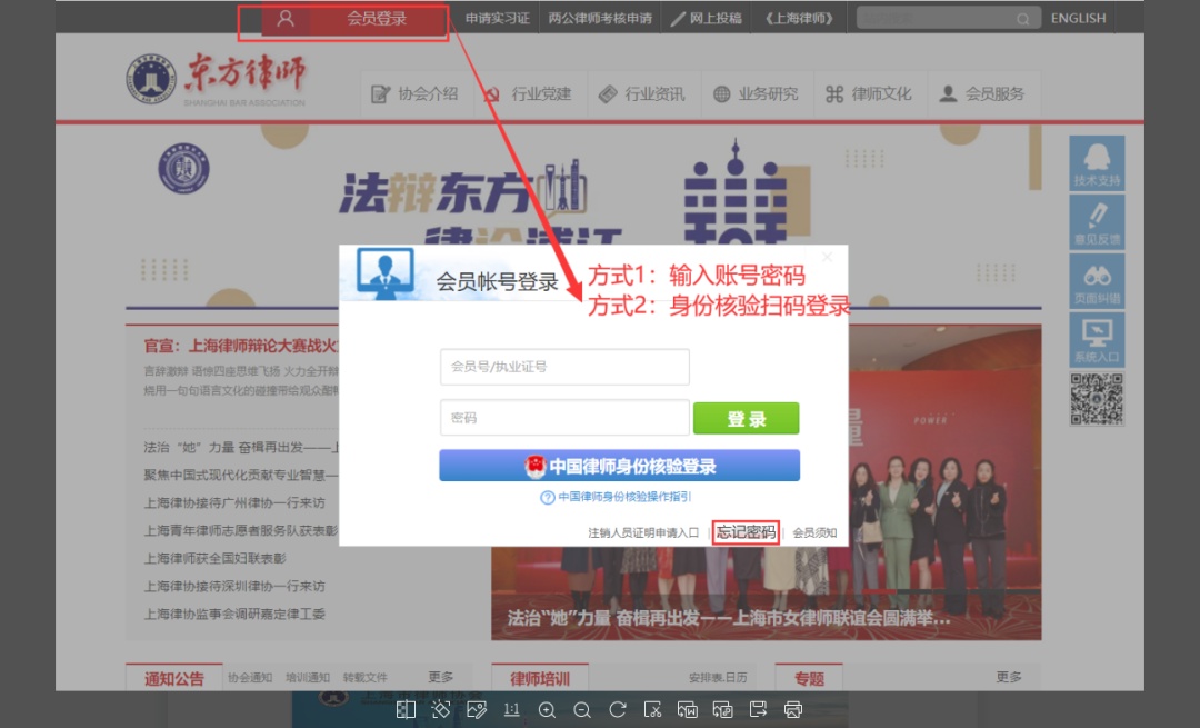 注意:律师账号即执业证号,密码忘记可通过“找回密码”进行找回。