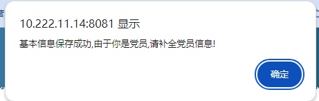 如政治面貌为中共党员或中共预备党员,请在下图页面补全党员信息。如不是,则不展示该页面。