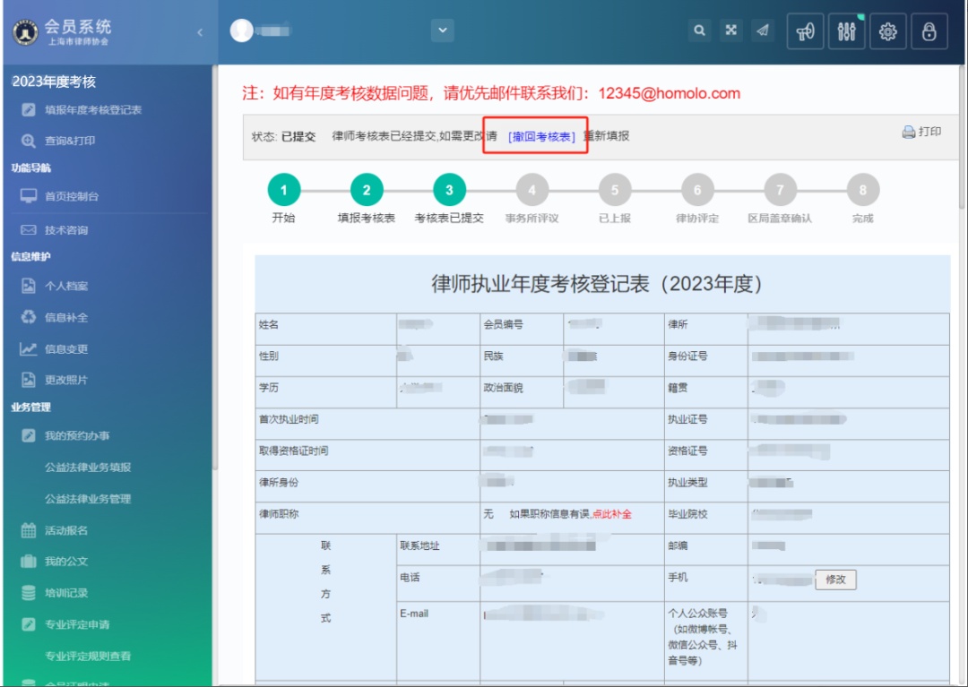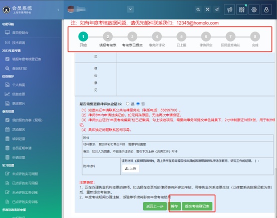 如确认无误可直接点击“提交考核登记表”等待律师事务所评议。