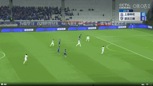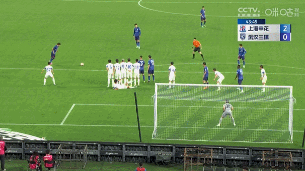不久后,谢鹏飞在禁区前沿被绊倒,申花获得任意球。谢鹏飞主罚搓射近角得手,申花2比0扩大领先优势。