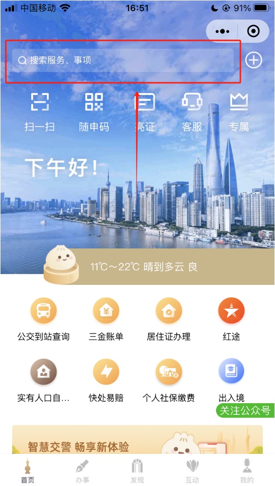 第一步:打开“随申办”(APP、微信小程序、支付宝小程序),首页搜索“社保卡”,选择“社保卡申领”服务。
