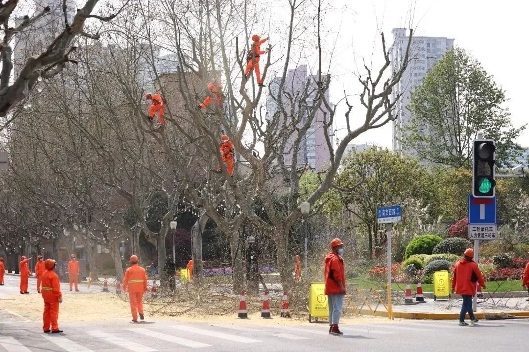 日前,市绿化市容热线对2021—2024年3月涉果毛飘絮诉求进行了系统分析,梳理出全市113 个果毛飘絮高发、易发区域。其中,愚园路、西康路、陕西北路(安远路—新闸路)、康定路、北京西路种植的悬铃木已完成修剪或控高修剪;针对“巨富长”街区、陕西北路(新闸路—北京西路)等无法有效开展果球修剪工作的路段,计划于四月下旬开展物理吹冲工作。