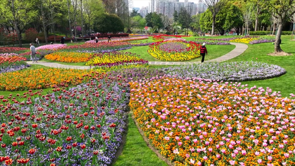 无形中将公园点缀成一片漂亮的“花海”