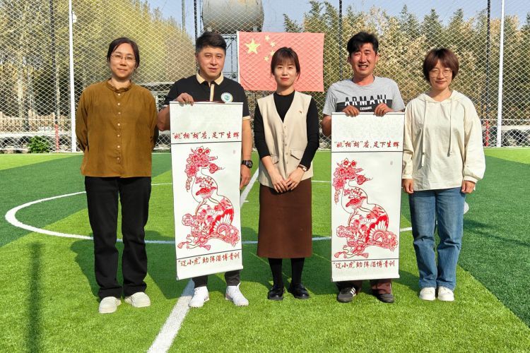在此次训练课尾声,淄博高新区四宝山街道银泰城社区的剪纸艺人以齐文化为背景,创作了两幅《福禄寿喜》剪纸作品赠予姚立,向其展示了淄博高新区以文化赋能全民健身运动、借助足球青训促进青少年素质教育水平的决心和信心。