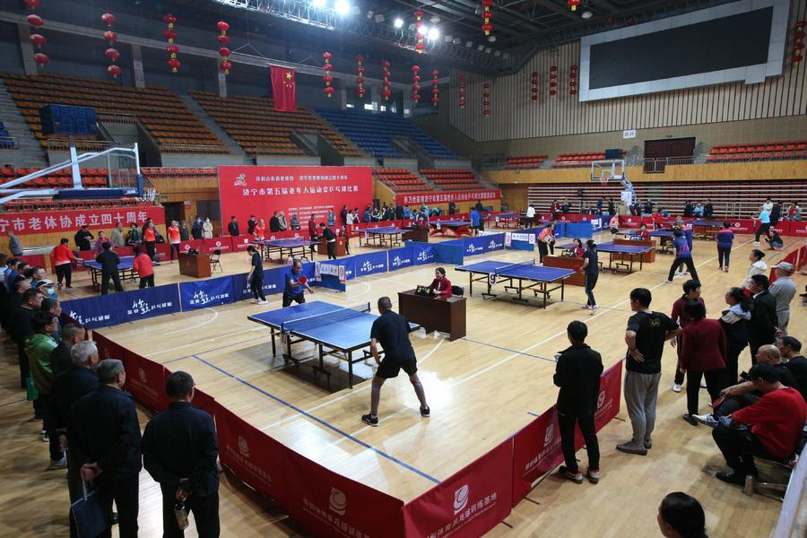 4月10日,济宁市体育馆内人声鼎沸,热闹非凡。随着乒乓球在桌面上轻盈弹跳,庆祝山东省老体协、济宁市老体协成立40周年,济宁市第五届老年人运动会首个比赛项目——乒乓球比赛正式拉开帷幕。来自全市11个县市区及高校的14支代表队,共计137名运动员、教练员齐聚一堂,共同为荣誉而战,为健康而赛。