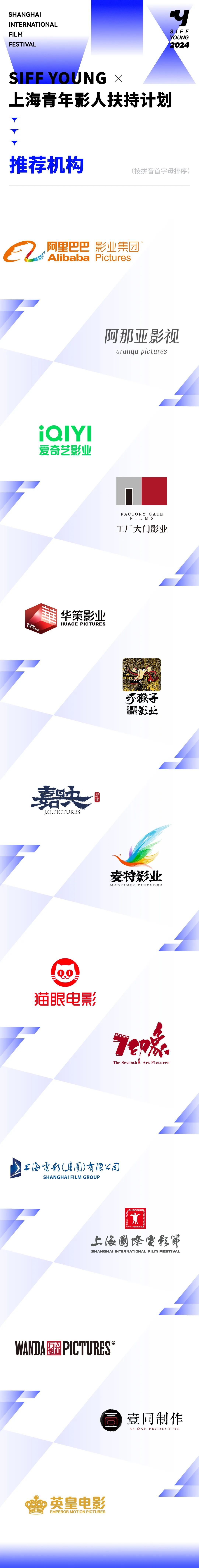 项目启动以来,2024 SIFF YOUNG x 上海青年影人扶持计划获得了行业的密切关注和积极响应。今年共有15家国内一线影视制作、发行机构和15位中外资深电影人参与,他们通过提名的方式,推举了一大批优秀的青年电影导演、制片人和编剧。推荐机构及推荐人名单如下。