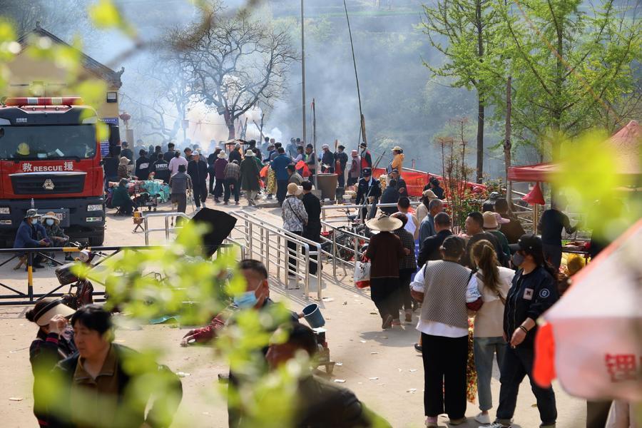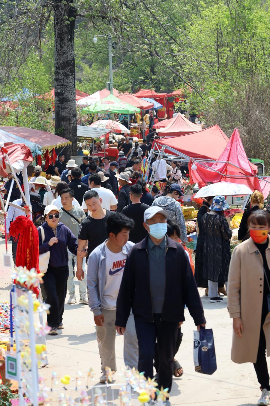 4月11日,是农历三月初三,枣庄市山亭区沧浪渊庙会热闹非凡,庙会上如非遗饰品、小吃、农产品等淋漓满目,从初一到初三,三天内吸引鲁南周边10万多名香客和游客前来赶庙会祈愿游玩。