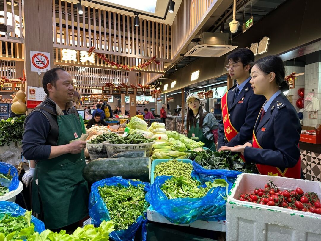 青浦区税务局税宣小分队走进三元河菜市场,实地了解商户经营情况并介绍个体工商户全周期涉税业务操作流程和最新税收优惠政策,针对性地进行答疑解惑,助力个体工商户高质量发展,进一步扩大税宣覆盖面和影响力。