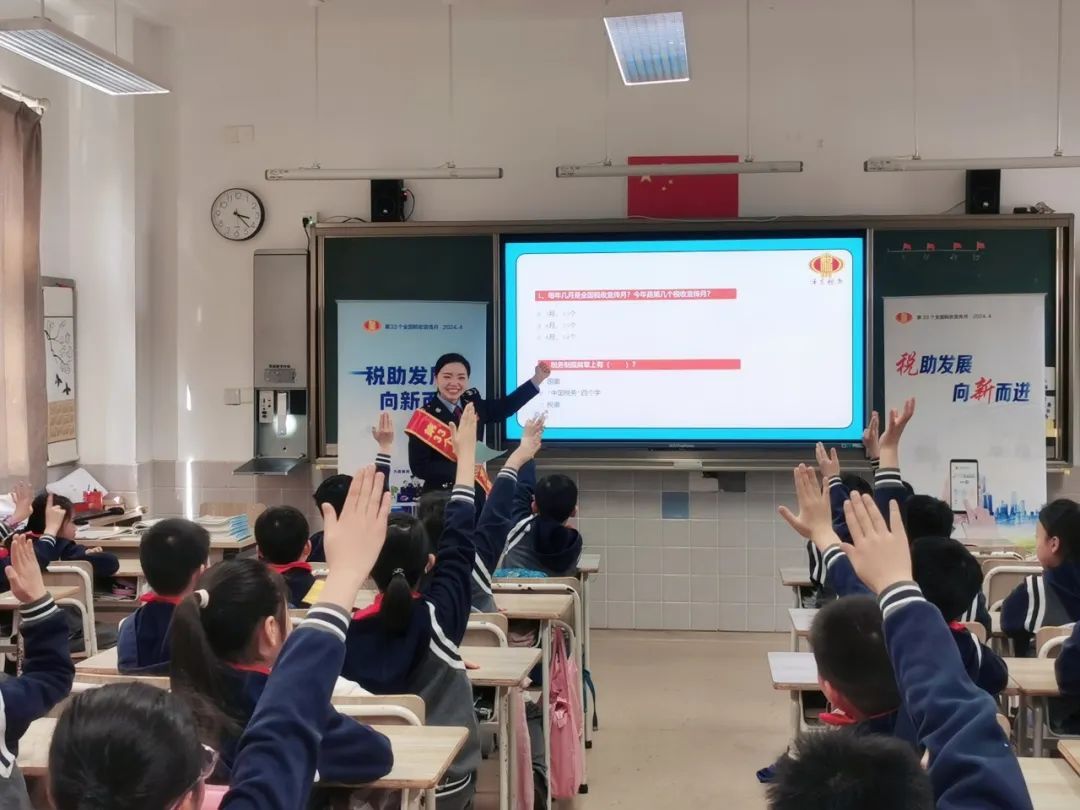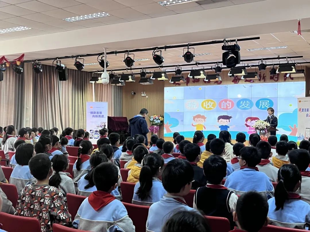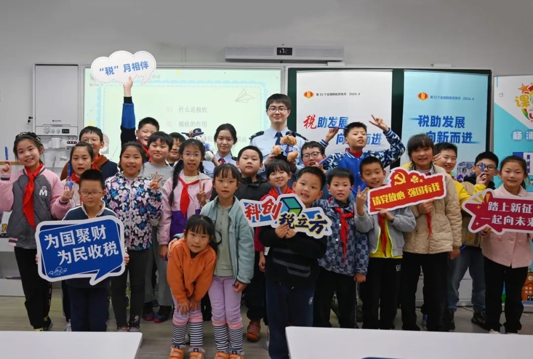 浦东新区税务局走进上海市第六师范学校附属小学,将“税助发展 向新而进”播撒进菁菁校园,通过沉浸式税收知识小课堂,激发学生们争当懂法护法的“小小税法宣传员”,让税收宣传从校园“萌芽”,向家庭“发枝”,在社会“结果”。