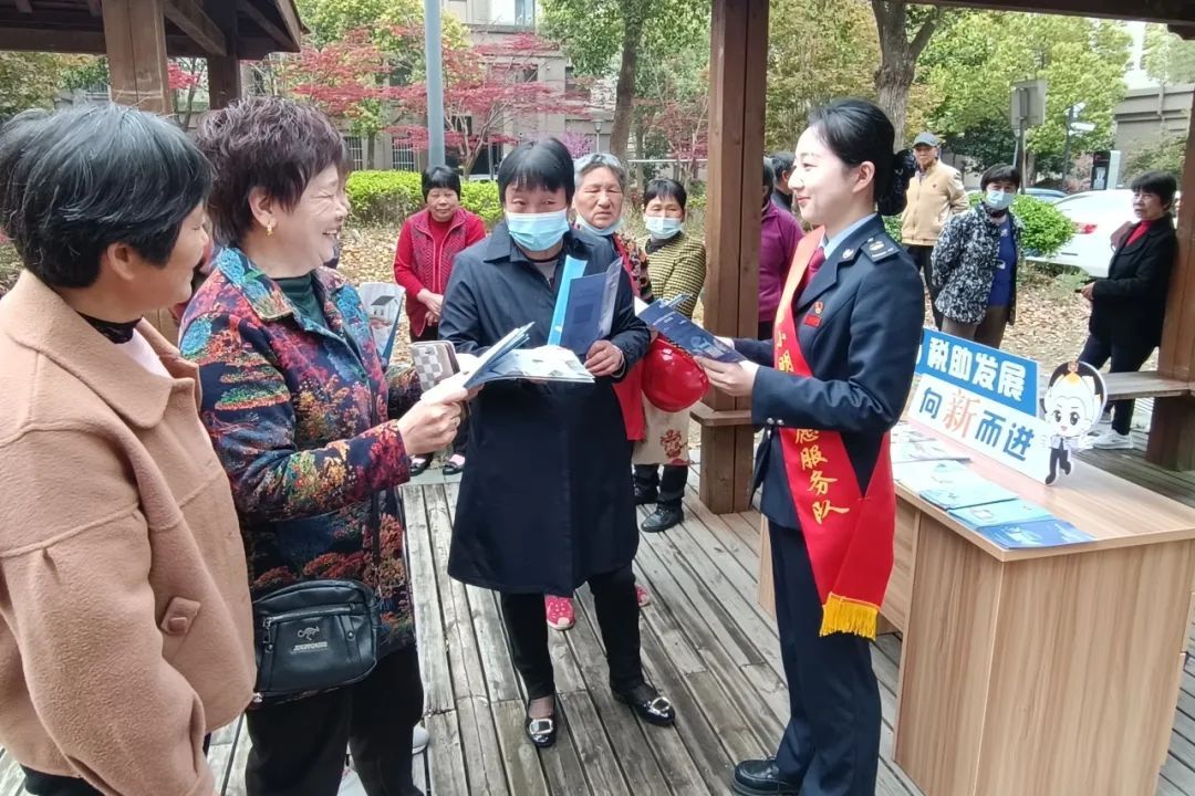 崇明区税务局走进城桥镇金日社区,开展“税惠春风进社区 用心关爱‘老’与‘小’”税法宣传活动,设置“税费服务驿站”,面对面为社区居民讲解税收政策,手把手辅导个税APP操作,耐心细致地解答社区居民关心关切的税费问题,通过“税务干部+社区网格员”将办税缴费服务触角延伸至“最后一米”。