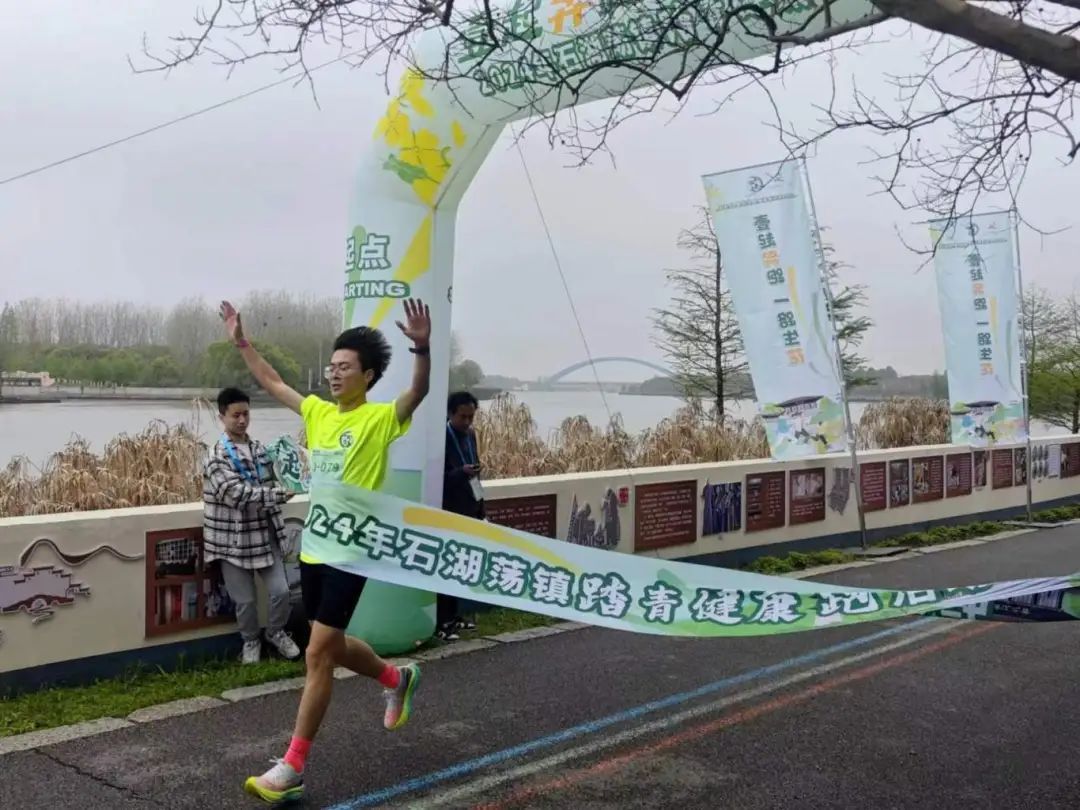 上午9时许,在几个暖场节目后,选手们身着统一服装,在教练的带领下跟着节奏跑跳热身,火热的气氛让选手们的神经逐渐兴奋起来。随着一声发令枪响,选手们纷纷出发,在赛道上舒展身体,尽情奔跑。 8岁的小朋友赵宇航和爸爸参加了当天的亲子踏春健康跑。激情澎湃的比赛过后,父子俩累得满头大汗却难掩兴奋。“虽然很累,但是今天拿了亲子组的第一名很开心。” 赵宇航说。赵先生也表示,自己平常很少和孩子一起参加类似的亲子活动,今天这个机会非常难得。 尽管竞赛跑赛程仅有5公里,但丝毫不影响参赛选手奋勇争先,他们铆足了劲在赛场上你追我赶,最终男子组第一名由来自东华大学的朱鹏辉拿下。冲过终点的那一刻,朱鹏辉激动地张开双臂,感受胜利的喜悦,“非常高兴,也是没想到能拿到冠军。” 朱鹏辉告诉记者,自己平时就有锻炼的习惯,今天和6个同校的朋友一起过来参赛,一起运动出汗,跑得非常尽兴。 除了东华大学的学生,上海外国语大学新成立的乐跑团也前来参赛,“我们一共有20名成员来到现场,能和团员们一起参加比赛感觉很有意义。”乐跑团团长陆昭希自豪地告诉记者,她本人也取得了本次比赛女子组第三名的好成绩。 据了解,石湖荡镇本次活动旨在彰显石湖荡镇全民健身的水平与风采,坚定文化自信,繁荣乡村体育文化,给更多的市民带来丰富多彩的业余生活。接下来,石湖荡镇第七届运动会也即将举办,各项赛事纷至沓来,希望广大市民踊跃报名参加。