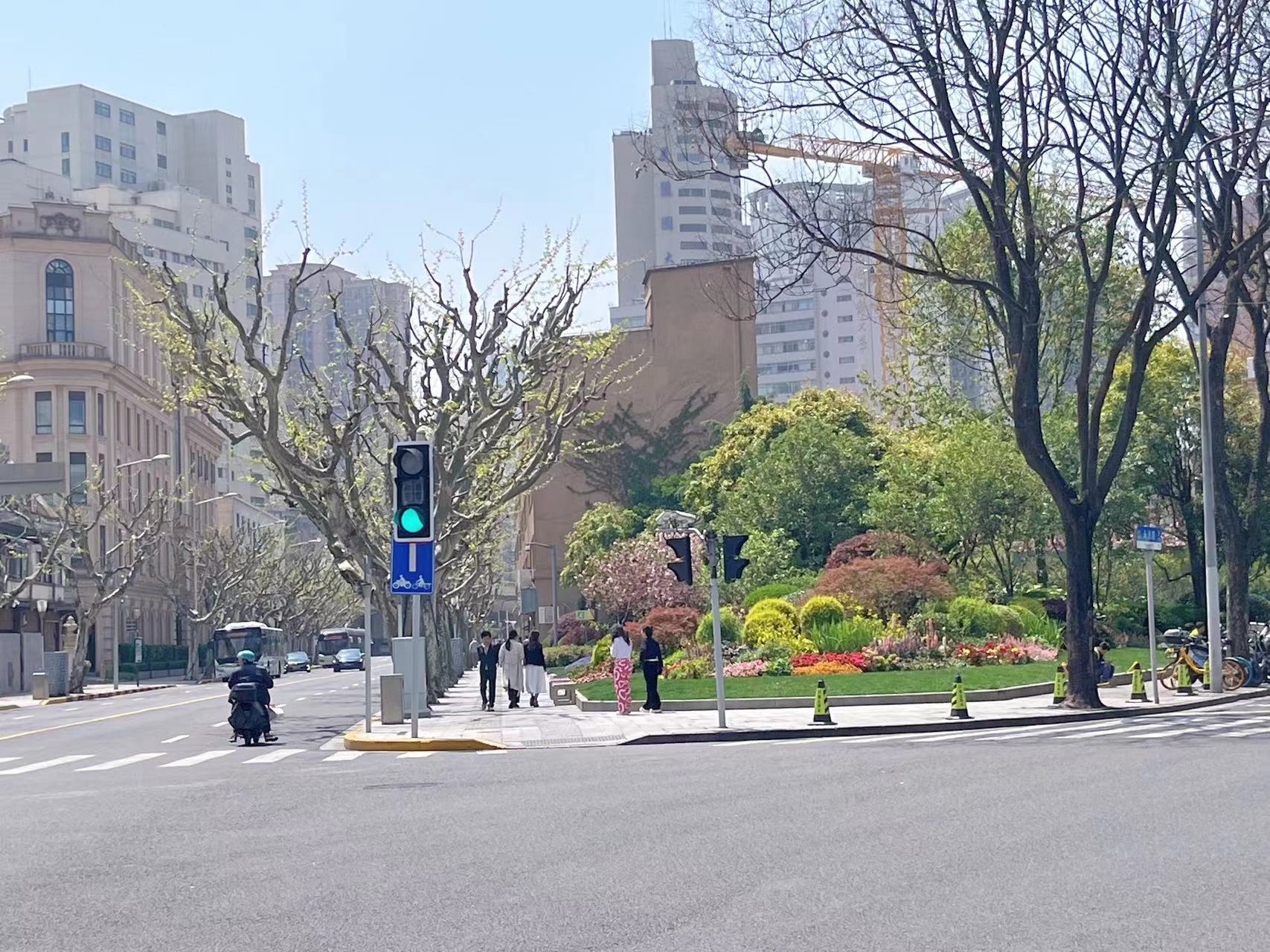 除了栽种晚樱,改造工程还将沿南京西路的步行界面适当拓宽,增强了绿地内外场地的联系,并减少了绿地旁变电站对绿化景观的影响;又重新梳理了绿化空间结构,加入舒适的城市家具,让路口的绿地成为一块周边市民可随时步入的休憩空间。