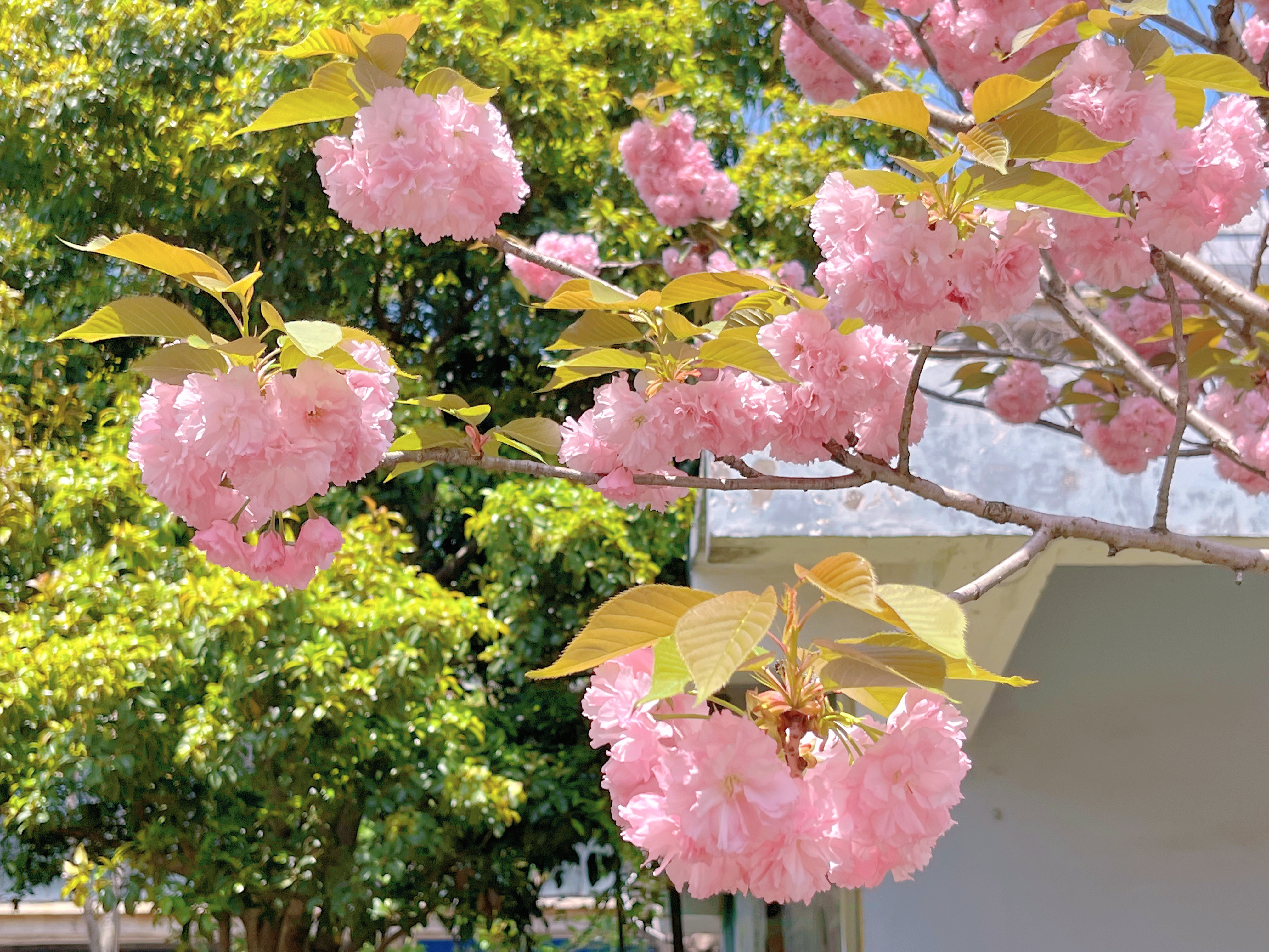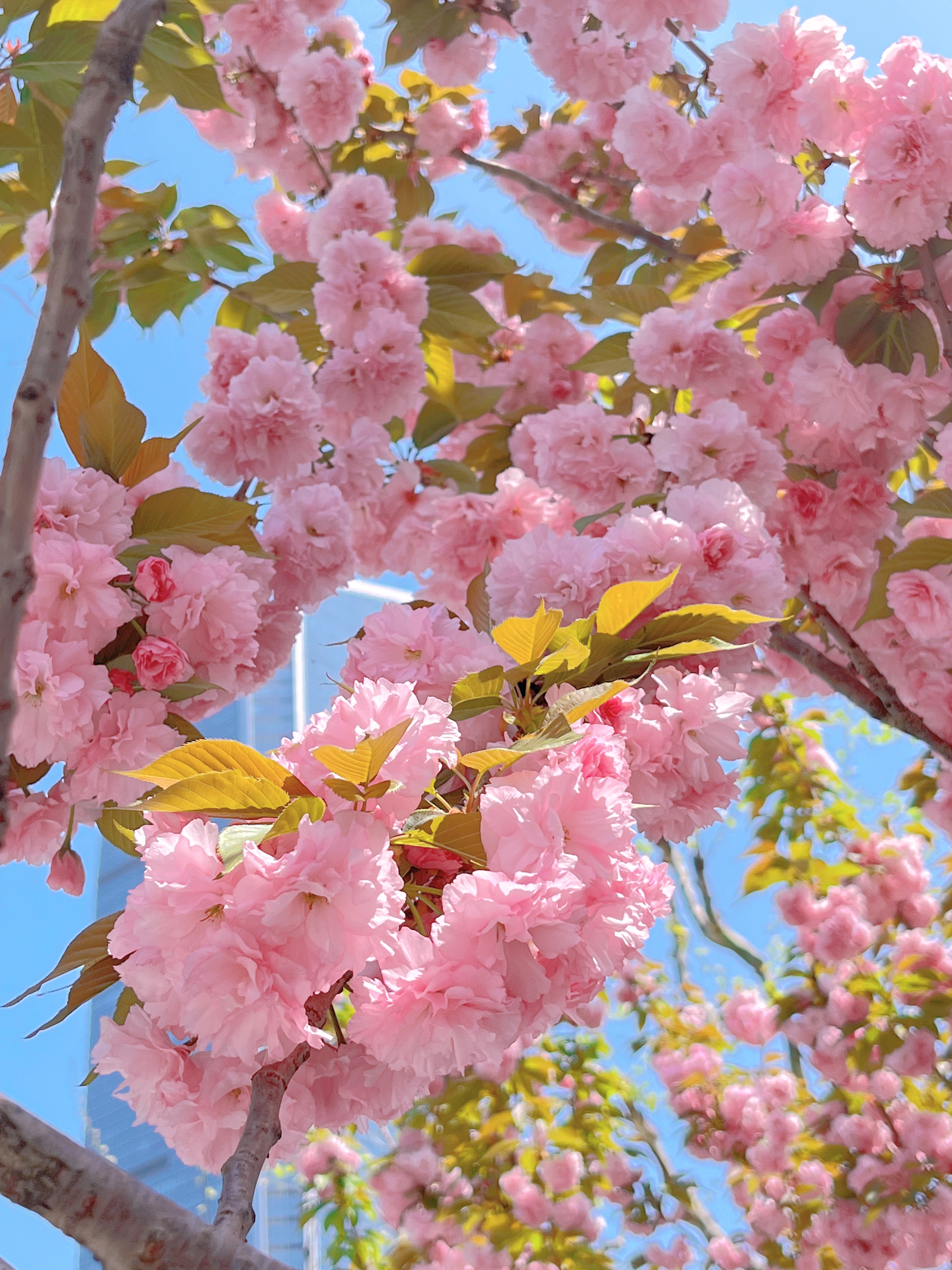 染井吉野、海棠相继谢幕,郁金香也到了花期的最后,但街角的晚樱开得正好~