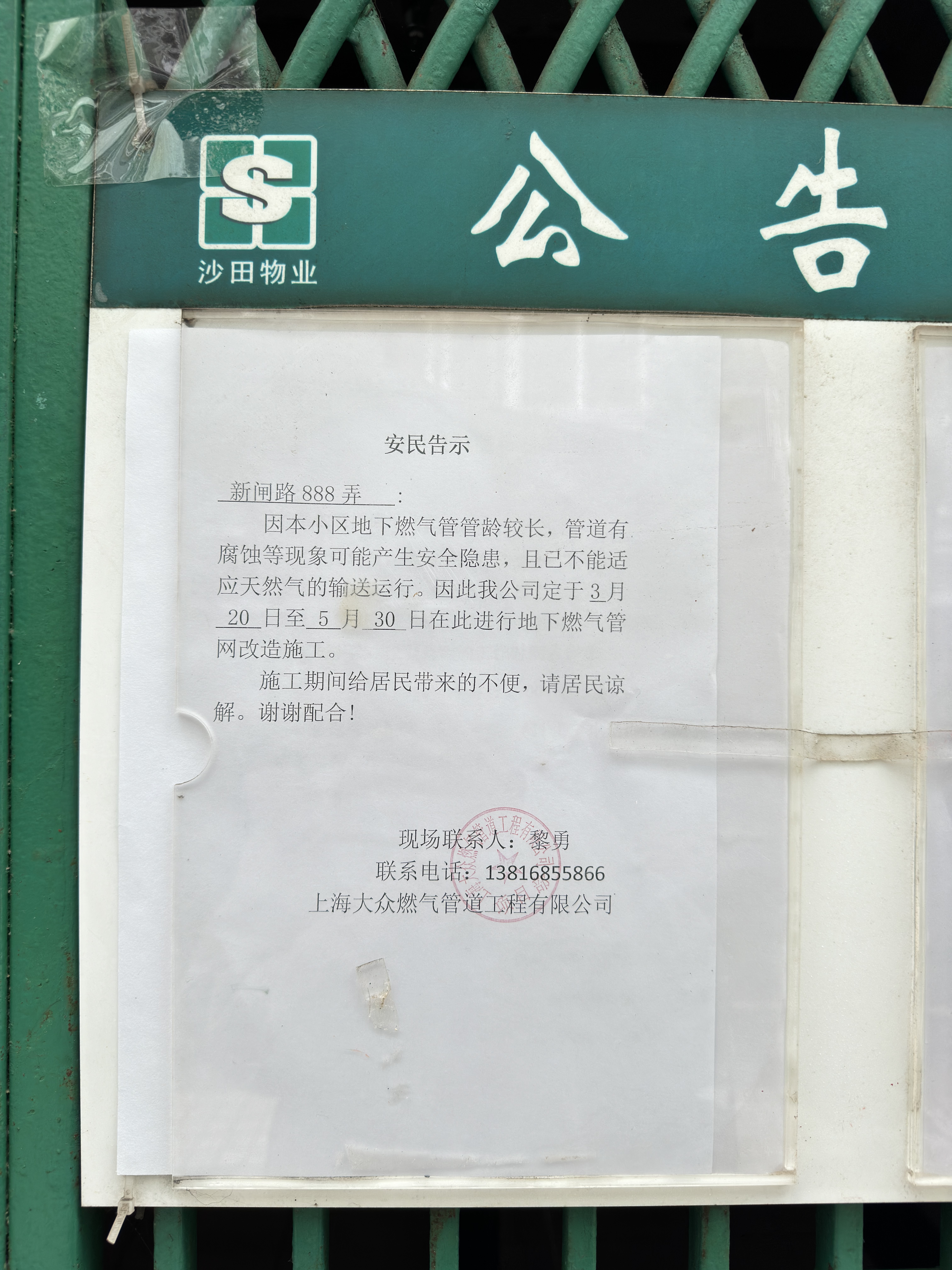 “提早告知,通知到位,让居民心里有个底,提前做好应对准备。”新福康里居委会主任陈建勇告诉记者,早在施工前的3月初,居委会依托网格成立工作专班,由网格员通过微信群发布相关通知,同时也在楼道张贴通告。“燃气网管更换是一件实实在在的好事”“管道更新改造后,燃气使用安全性将得到很大的提高”,得知消息后,大部分居民表示将积极配合施工。
